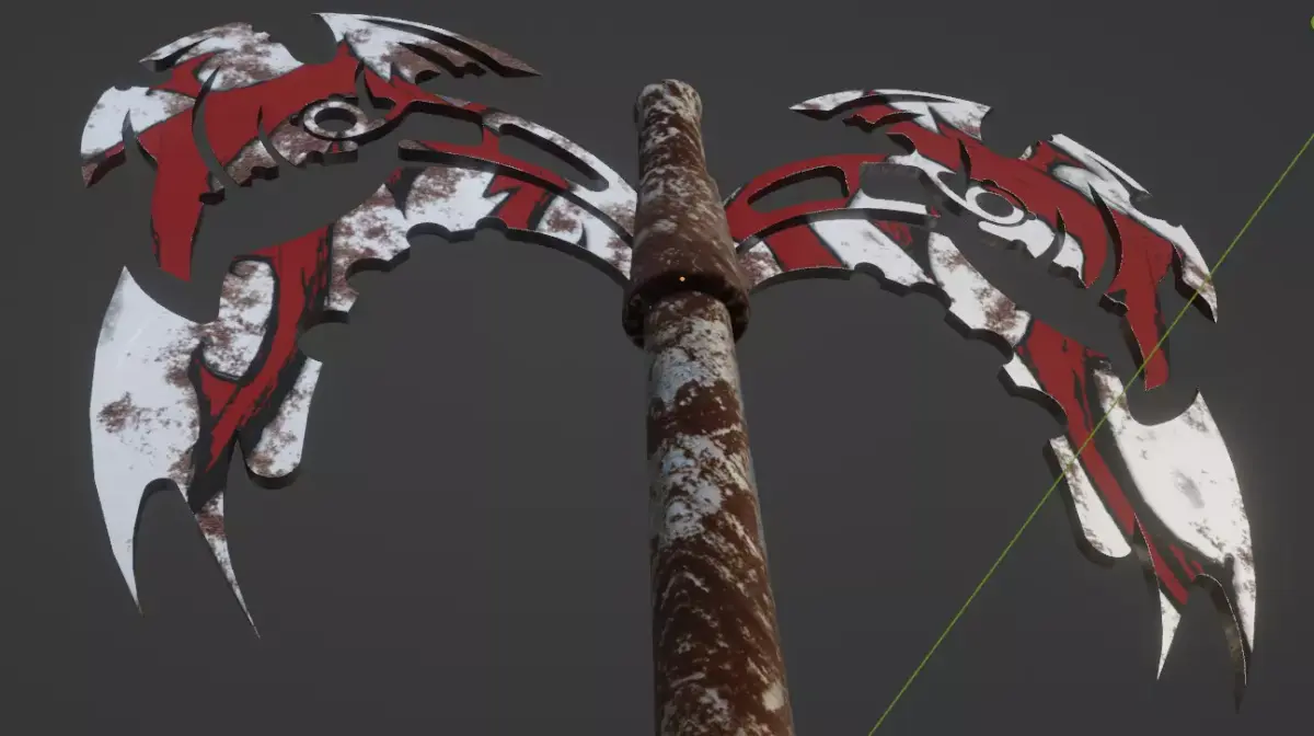 This double blade battle axe is a realistic fantasy weapon 3D model designed for games, cinematics, and real time projects. The axe features a heavy symmetrical twin blade design with worn and rusty metal surfaces, giving it a brutal and battle hardened appearance ideal for dark fantasy, medieval, and war themed environments.