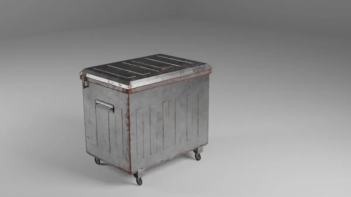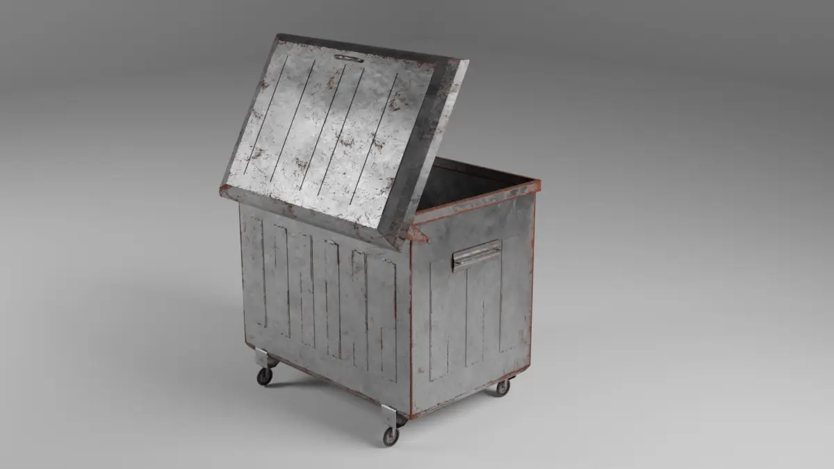 3D Low Poly game ready model of a with rusty dumpster . Used and clean textures included: