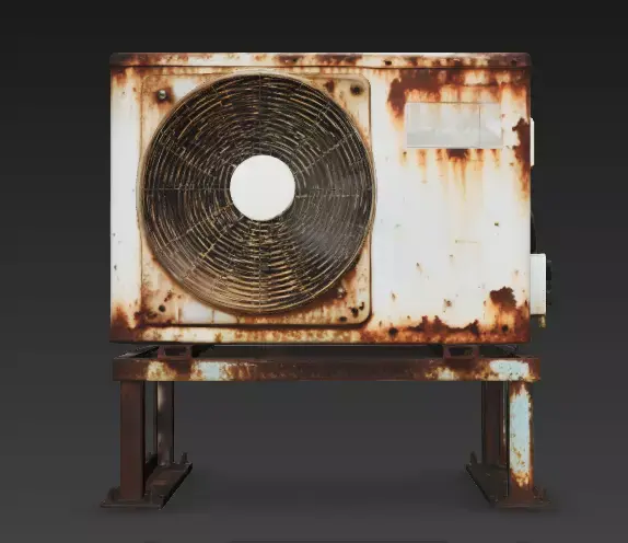 The Overall Concept This asset is an outdoor air conditioning compressor unit, the kind typically found on rooftops or behind buildings. It is depicted in a severely rusted and neglected state, making it perfect for urban decay scenes or abandoned industrial zones.
