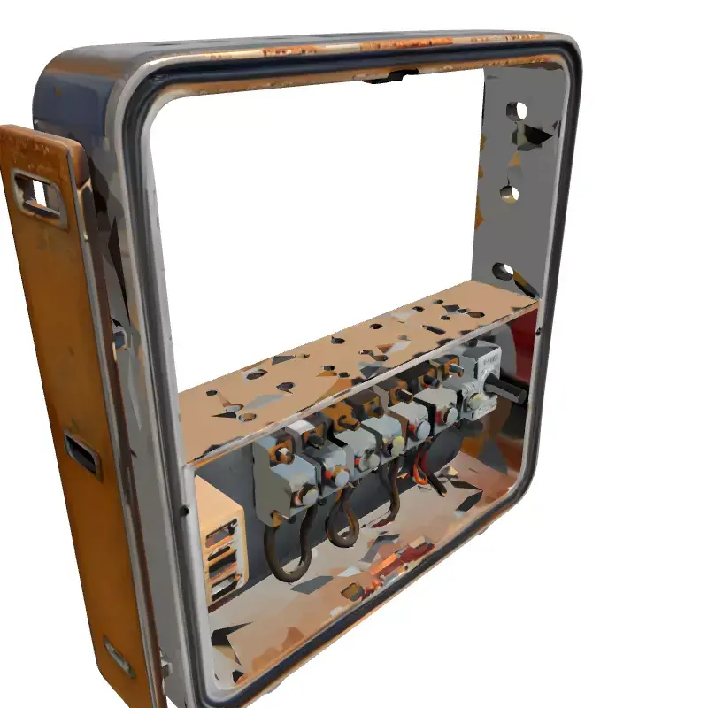 Presenting a meticulously crafted 3D model of a weathered industrial electrical fuse box, designed for exceptional realism and versatility. This highly detailed asset features a robust metal casing, showcasing authentic rust, peeling paint, and general wear-and-tear accumulated over years of exposure. The open hinged lid reveals an array of vintage-style circuit breakers or fuses, connected by realistically sculpted wiring, alongside a prominent control switch. This model is perfect for enriching environments in game development, particularly for post-apocalyptic, horror, abandoned facility, or industrial-themed projects. It also serves as an excellent prop for architectural visualization, adding a touch of gritty realism to industrial scenes, or enhancing cinematic renders and digital art compositions. With its high-fidelity PBR textures, the model ensures stunning visual accuracy across various lighting conditions. It is optimized for real-time applications such like games and AR/VR experiences, while also being perfectly suitable for high-resolution static renderings. The asset boasts clean topology and is fully UV unwrapped for easy material application and customization. Supported file formats include GLB, OBJ, STL, ABC, DAE, FBX, USD, and PLY, ensuring broad compatibility across major 3D software and engines.