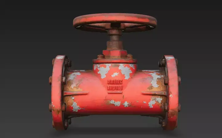 The Overall Concept This asset is a heavy-duty industrial gate valve, the kind used to control the flow of water, steam, or gas in factories. It is a detailed close-up prop, perfect for adding realism to boiler rooms, basements, or steampunk settings.