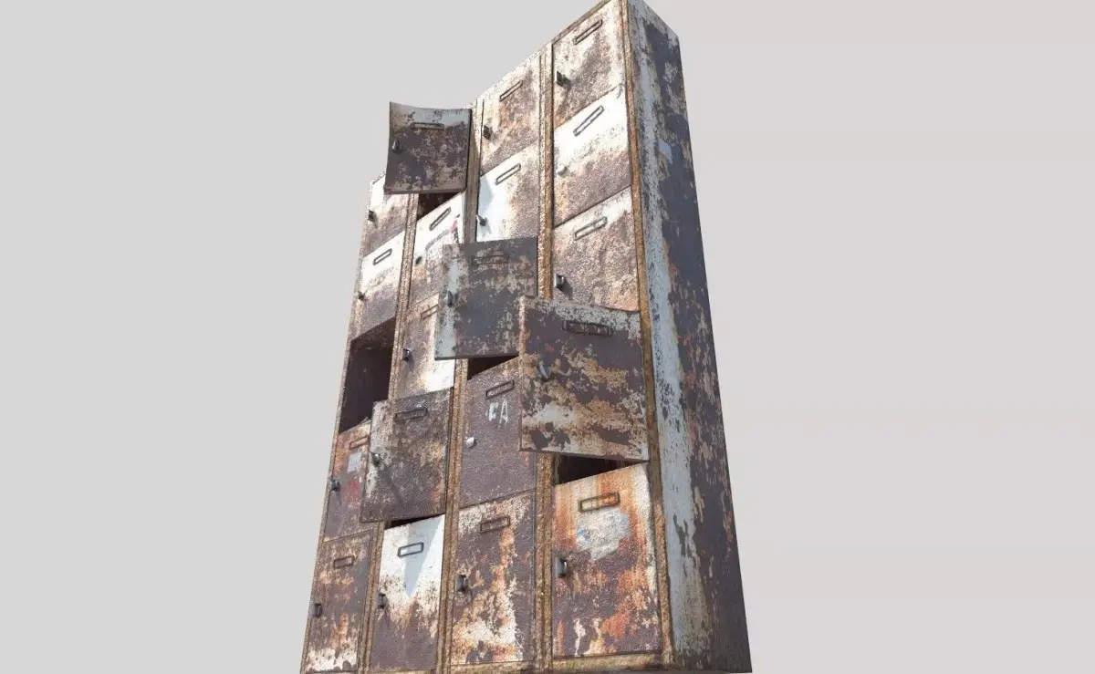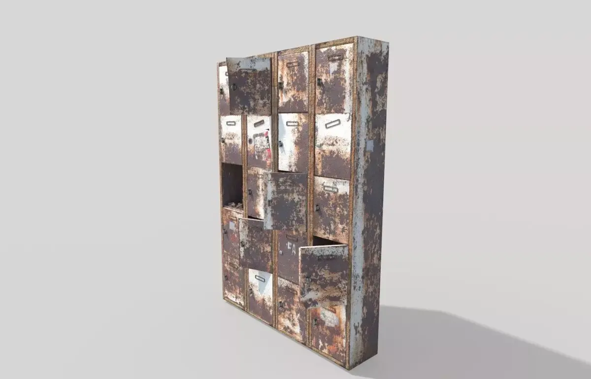 High realistic rusty weathered metal cabinet.Model is very realistic. It has 5 PBR materials.Each material consists of maps are diffuse-specular-glossiness-height and normal. Also, PBR Metallic-Roughness ( Basecolor-Metallic-Normal-Roughness-Height- ) workflow has been added. Model's textures has two sizes; 4096x4096 - 2048x2048. All maps are PNG formats .