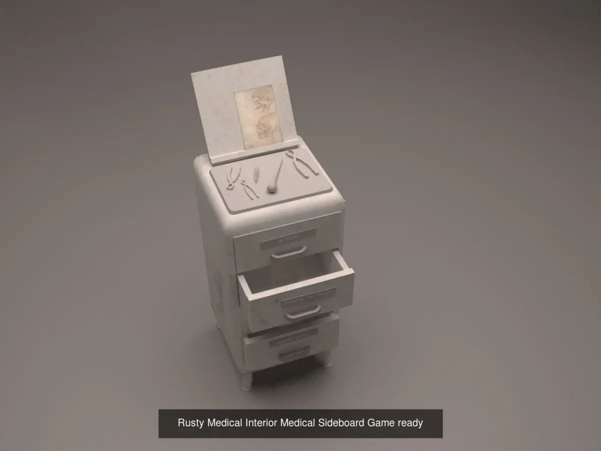 I designed some Interoir for a spooky Medical/Hospital Set. It can be used for Gameing Engines like Unity. It has a Texture Map and Normal Map also. Files are in *.FBX, *.OBJ Format, GLTF and USD format.