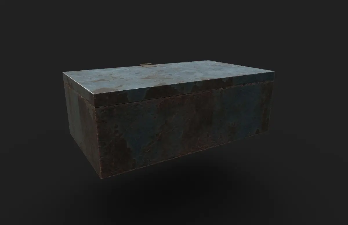 3D Low-poly Old Metal Box modeled in Maya and textured in Substance Painter, ready for games.