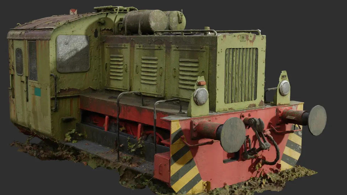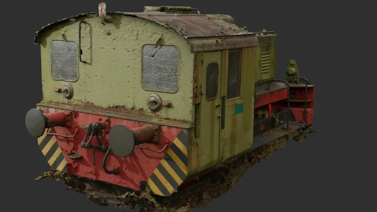 Rusty old locomotive in green and red colors. Discovered and scanned during my end of 2022 trip to eastern Germany and Poland.