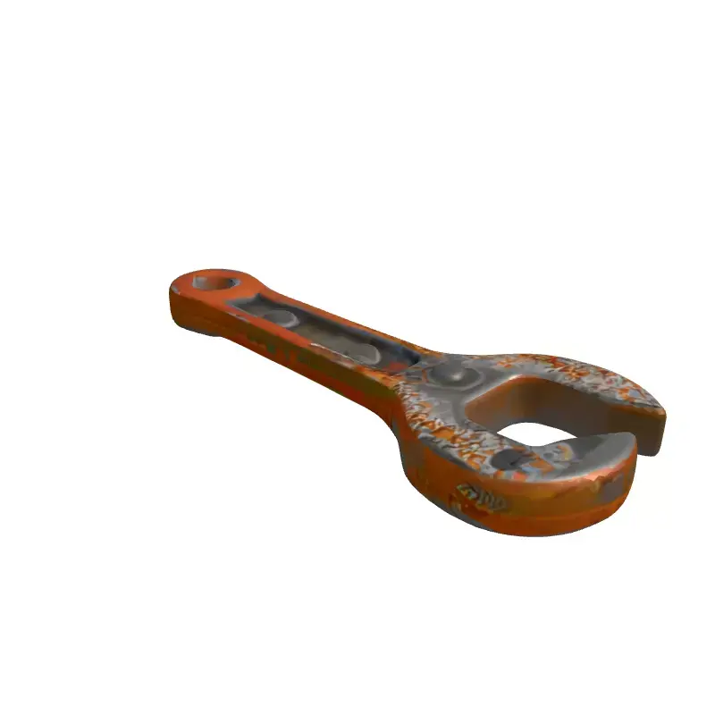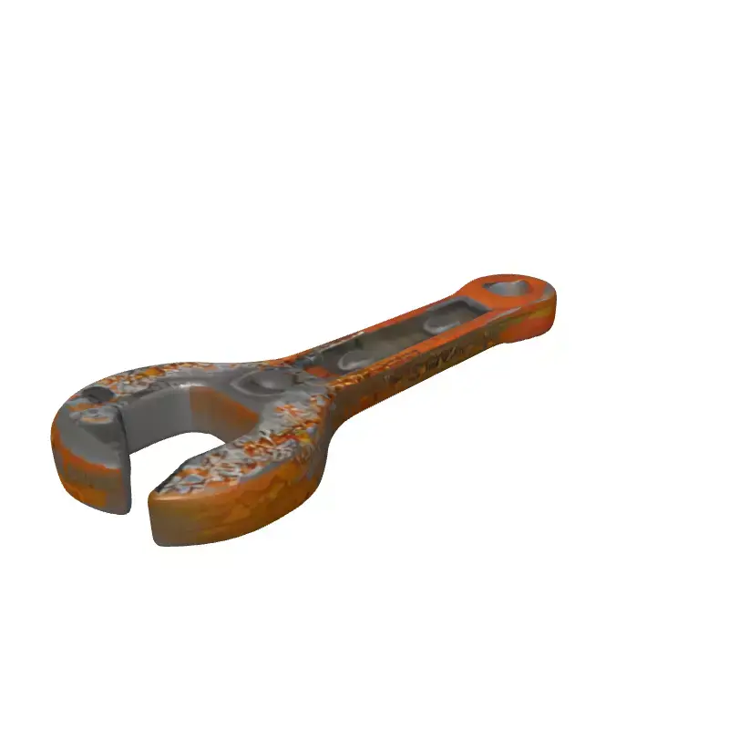 This highly detailed 3D model represents an old, rusty open-end wrench, meticulously crafted to bring a touch of realism and history to your digital projects. The model features authentic wear and tear, showcasing a metallic surface with prominent rust and grime, achieved through high-quality Physically Based Rendering (PBR) textures. It's an ideal asset for various usage scenarios, including immersive game environments such as post-apocalyptic settings, industrial workshops, abandoned factories, or detailed garage scenes. Furthermore, its realistic aesthetic makes it perfect for architectural visualization projects requiring authentic props, digital art compositions, or adding depth to AR/VR experiences. The model is optimized for real-time applications, ensuring excellent performance in game engines while maintaining a high level of visual fidelity. It boasts clean, efficient topology and is fully UV unwrapped for optimal texture mapping. Supported file formats include GLB, OBJ, FBX, and USD, providing broad compatibility across different 3D software and platforms. This asset is ready for immediate integration into your scenes, requiring minimal setup. Whether you're building a survival game, enhancing a detailed interior scene, or creating a compelling piece of digital art, this realistic wrench prop will elevate the visual quality of your project with its authentic, weathered appeal.
