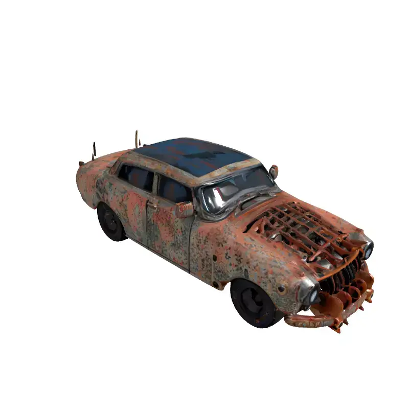 Presenting a meticulously detailed 3D model of a rugged, post-apocalyptic battle car, designed to thrive in dystopian landscapes. This vehicle embodies a formidable aesthetic, featuring heavy rust and weathering textures, an intimidating spiked grille, a reinforced front bumper with sharp spikes, and an exposed engine bay adorned with additional defensive spikes. Perfect for game developers seeking a unique asset for survival, open-world, racing, or action-adventure titles. Its high level of detail and PBR texturing also make it ideal for cinematic renders, animation projects, virtual reality (VR) and augmented reality (AR) applications, as well as digital art scenes. The model is optimized for real-time performance while maintaining a robust visual fidelity suitable for high-quality static renders. It features clean topology, is fully UV unwrapped, and includes high-resolution PBR textures (Albedo, Normal, Roughness, Metalness, AO) to ensure a realistic and immersive appearance in any lighting environment. Supported file formats likely include GLB, OBJ, FBX, USD, DAE, and ABC, ensuring broad compatibility across various 3D software and game engines. This asset is ready to be dropped into your next project to instantly add a touch of wasteland grit and character.
