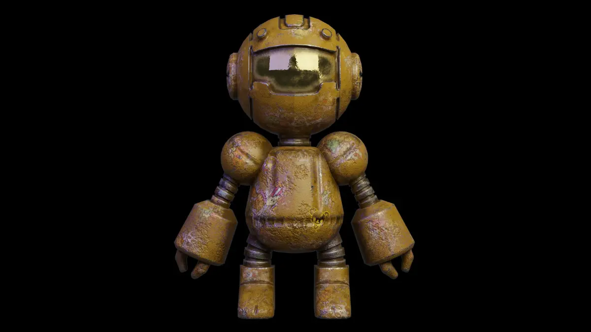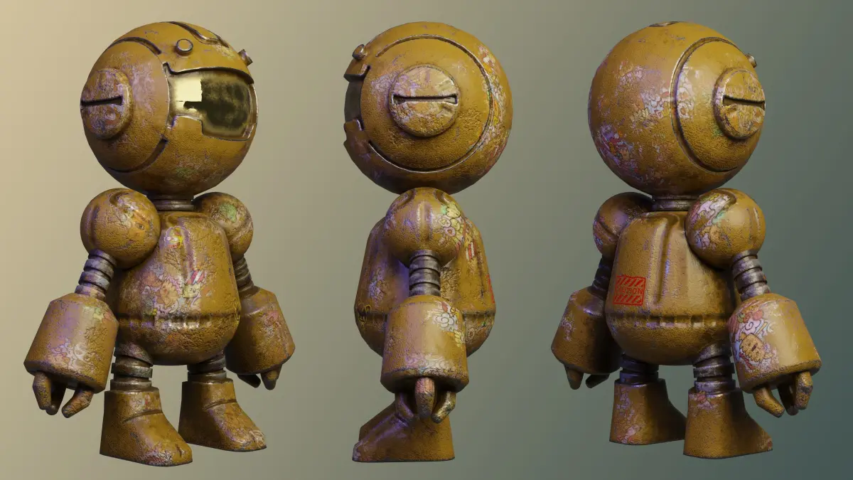 Rusty-robot PBR Low-poly game ready wooden figure Free low-poly 3D model