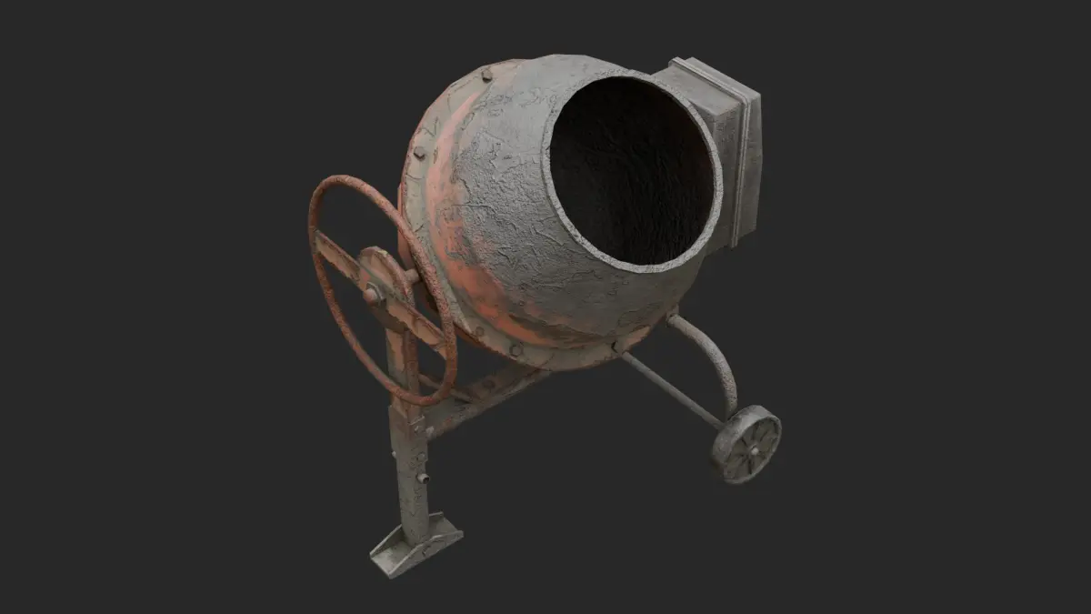 The set includes abandoned lockers, air conditioners, barrels, dollies, cans, ceiling lights, cement mixers, engines, gas tanks, tires, valves, washing machines and basic scrap metal parts.