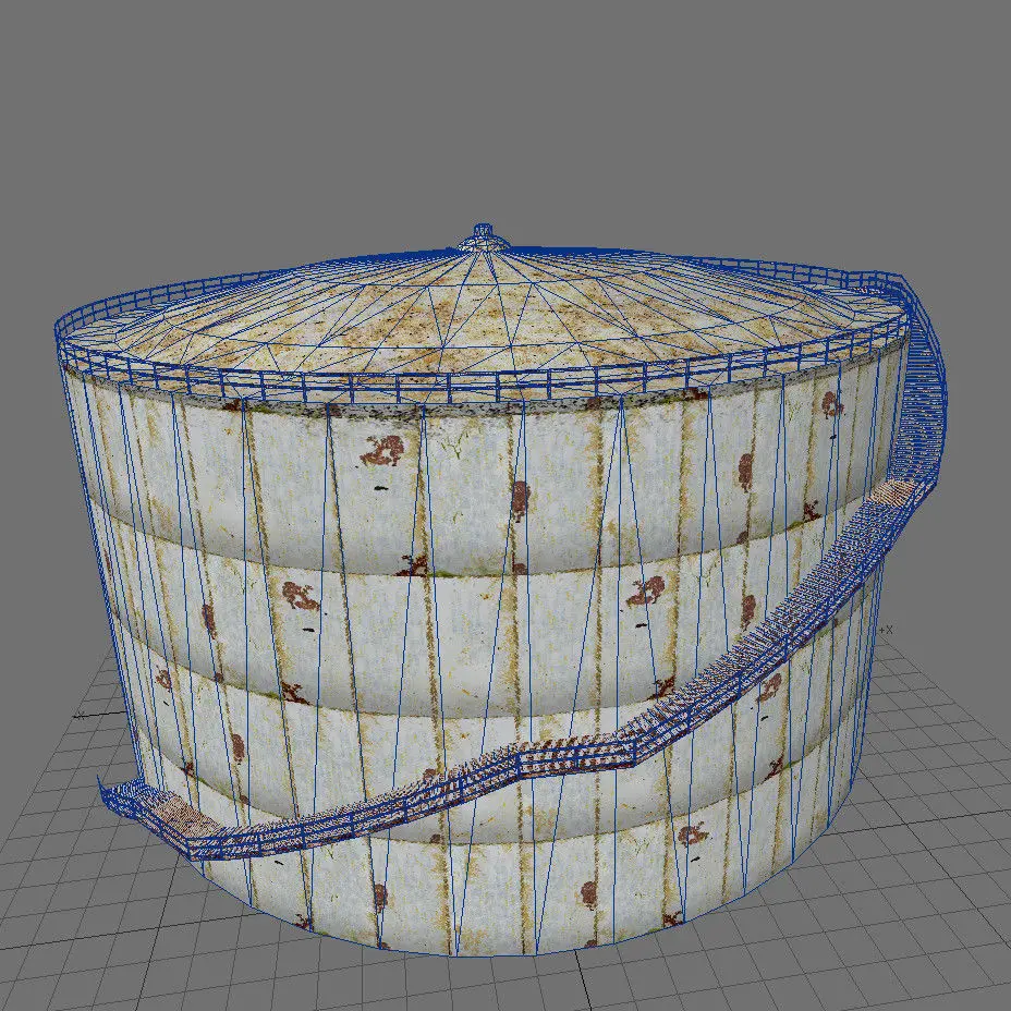 Low poly model of oil silo. This is designed for medium distance viewing and has relatively low poly count 4296. Triangles only.