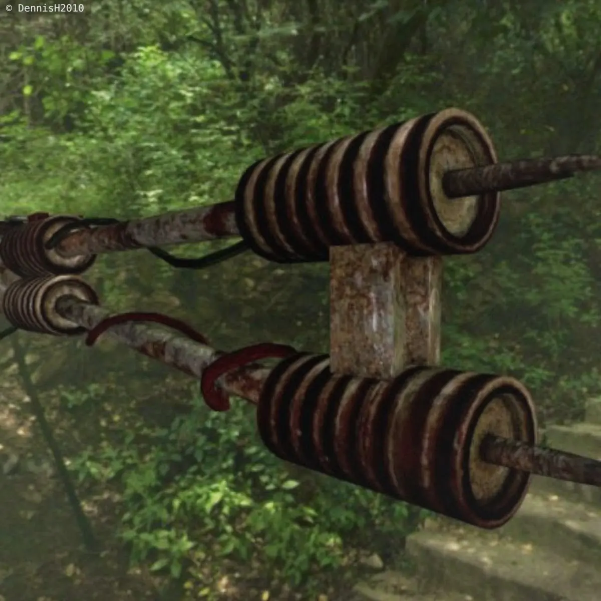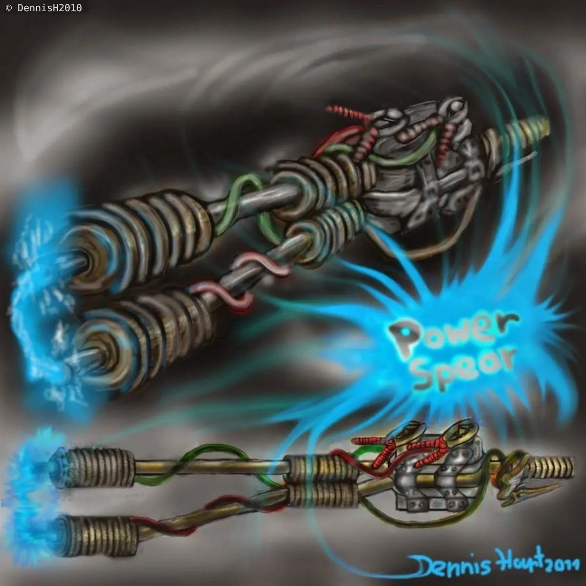 Here is a rusty eschatological stun spear, powered by an old car battery.