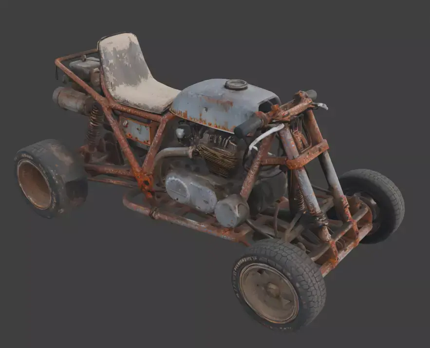 20 Tags3d model go kart rusty vehicle abandoned car vintage kart weathered metal industrial asset engine model post apocalyptic rustic transport realistic texture scrap metal old vehicle garden find mechanical detail textured model low racing vehicle junk car rusted frame outdoor asset