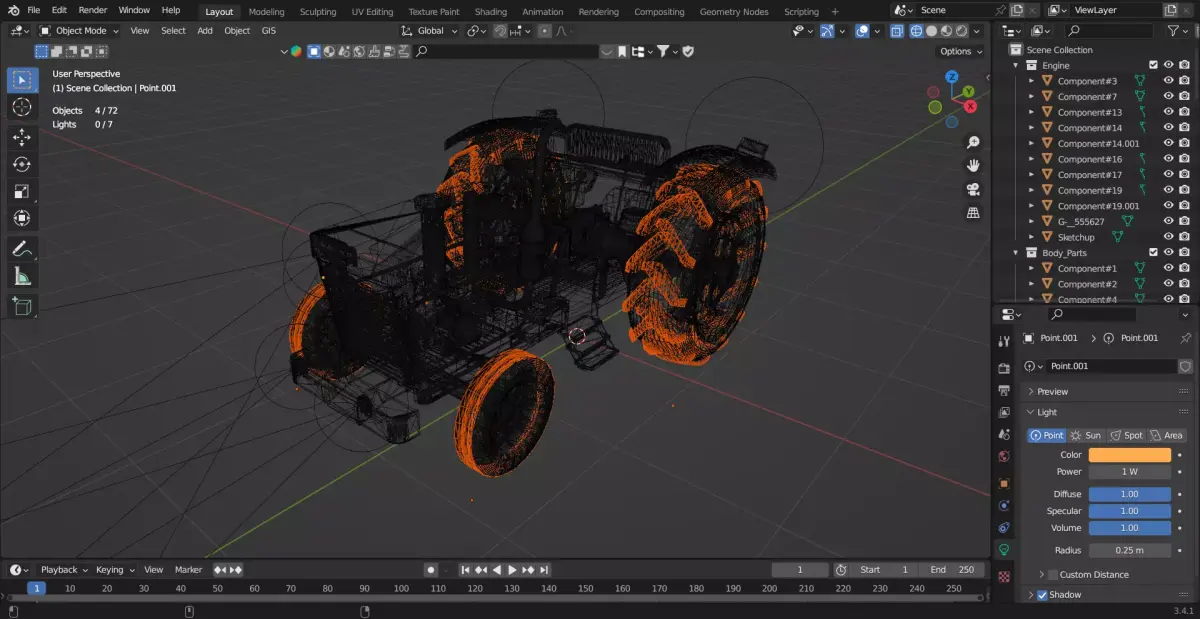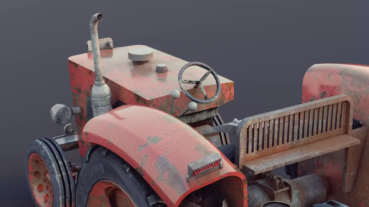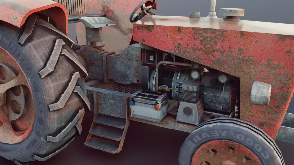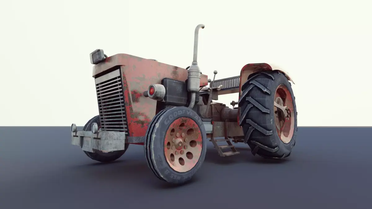 Rusty Vintage Tractor Game-Ready PBR 3D Model Low Poly Blender 3.4 UV Mapped