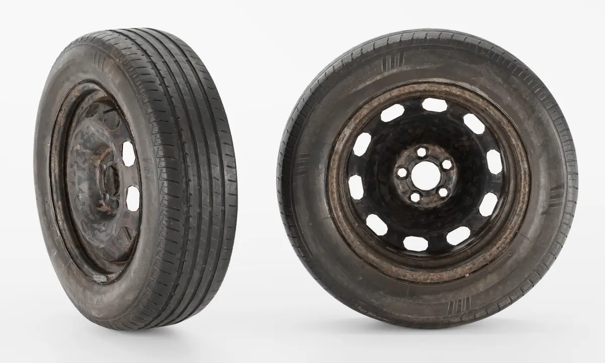 Rusty Wheel 3d low poly modelRusty wheel model include: 3ds max 2020 and 2023 versions; obj, fbx, gltf and dwg exported files; preview images with any sides(wireframe image also); texturesPolys: 16,702Verts: 8,321Materials: metal and rubber