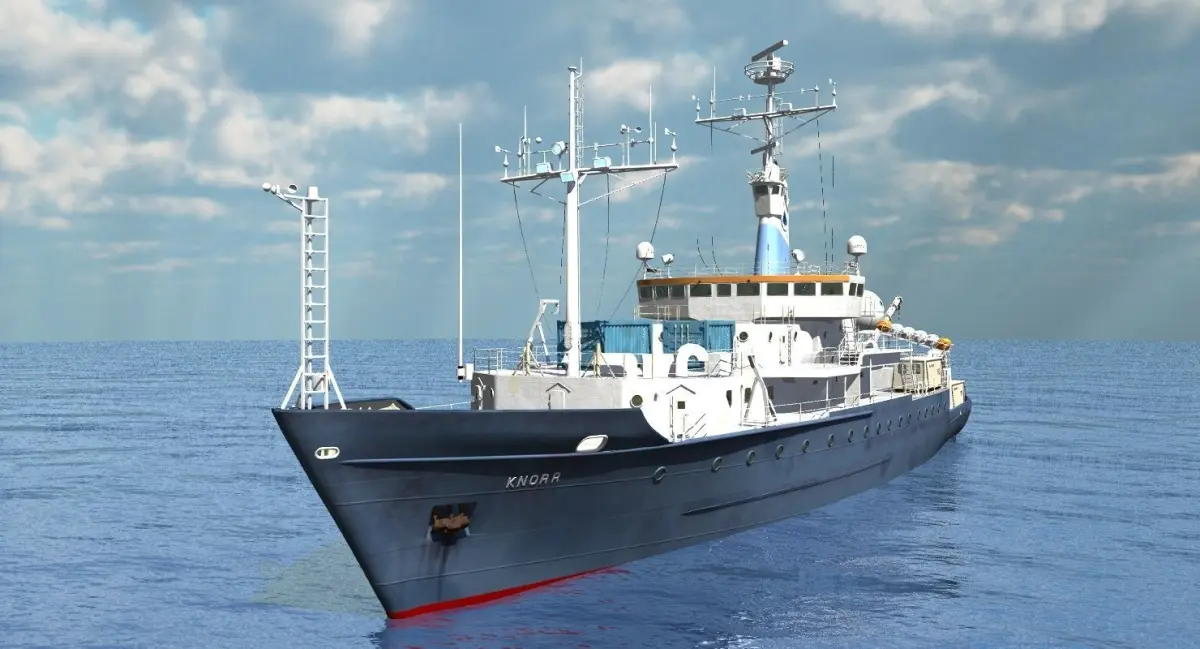 The research vessel Knorr is owned by the U.S. Navy and operated by the Wood Hole Oceanographiv Institution for the ocean research community. Knorr is best known as the ship that supported a team of WHOI and French researchers in 1985 as they discovered the wreck of the RMS Titanic.