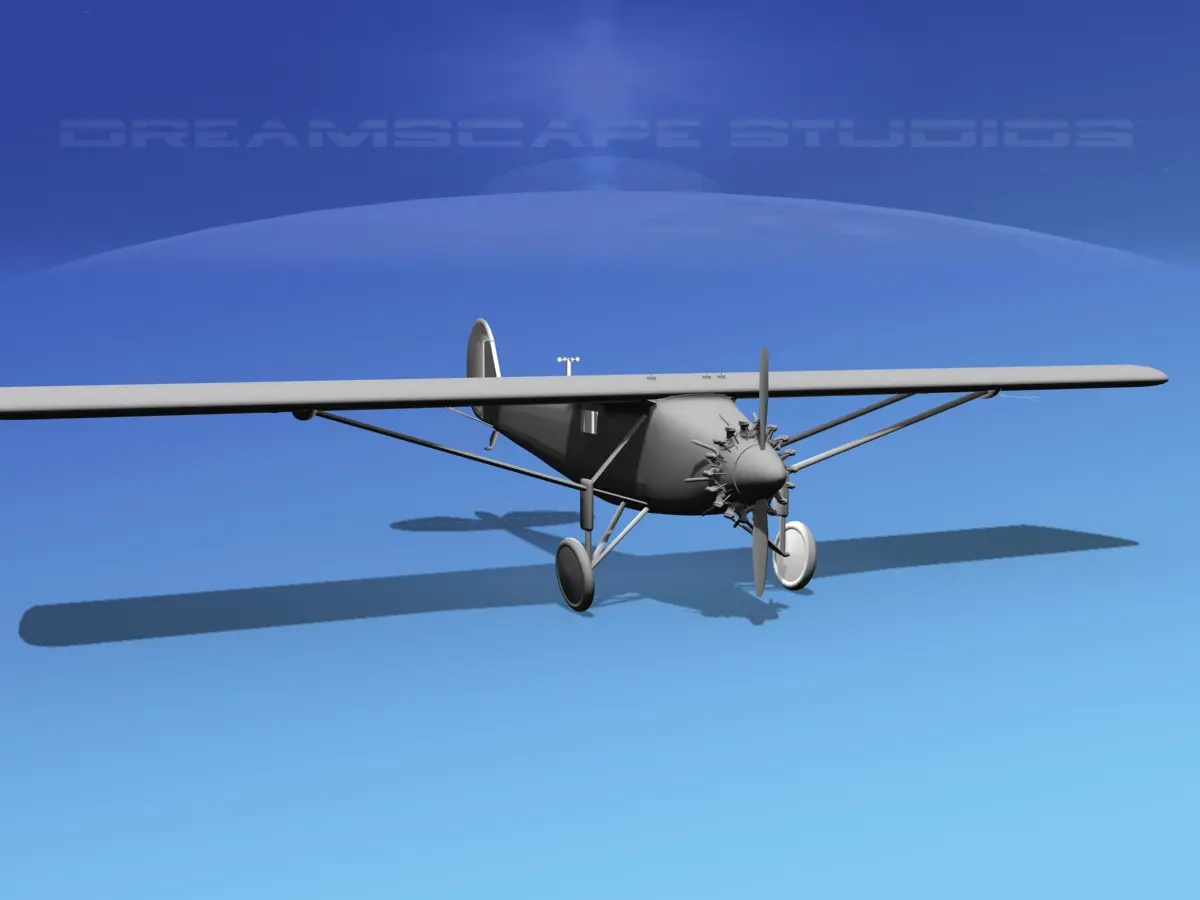 This model is built near to scale and very detailed. This model has many animateable features including pilots door, ailerons, elevators, rudder, propeller, landing gear and flight controls.The VBM version comes with NO textures or materials. Model is provided in a wide range of formats.Spirit of Saint Louis, in which Charles A Lindbergh made the first nonstop solo flight from New York to Paris, May 20–21, 1927.