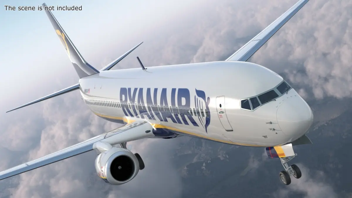 Ryanair Boeing 737-900 with Cabin and Doors Rigged for Maya is a three-dimensional model of a commercial aircraft, popular for its use by the low-cost airline Ryanair.