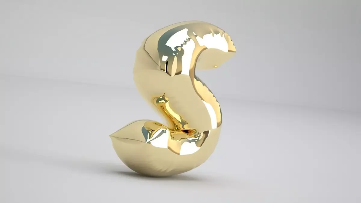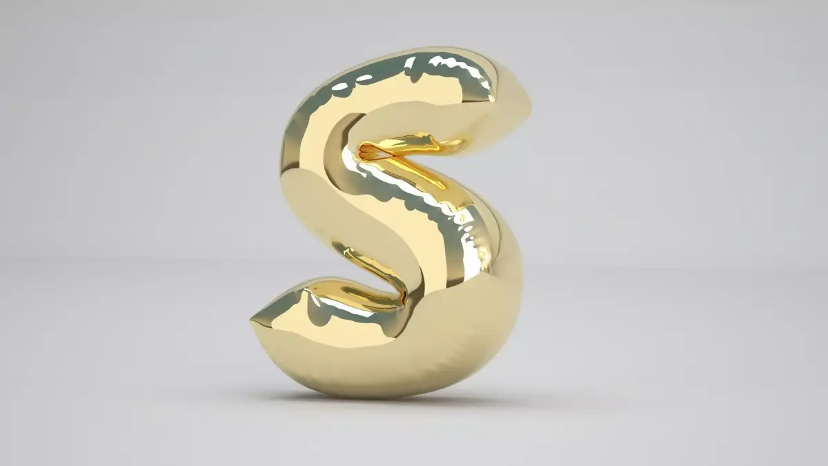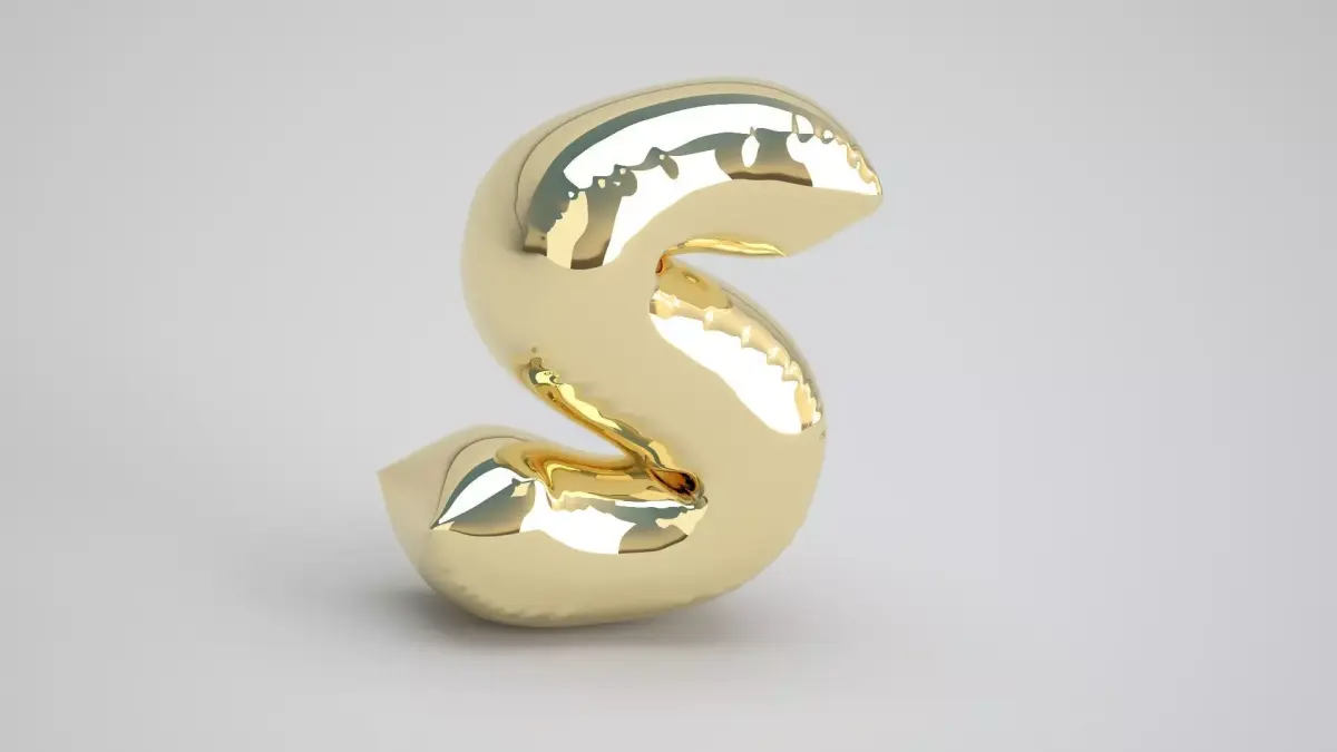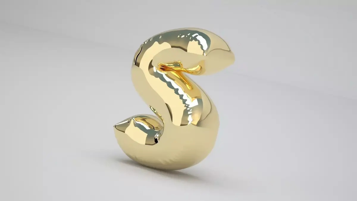 Realistic 3D Model OF Balloon S Alphabet Gold