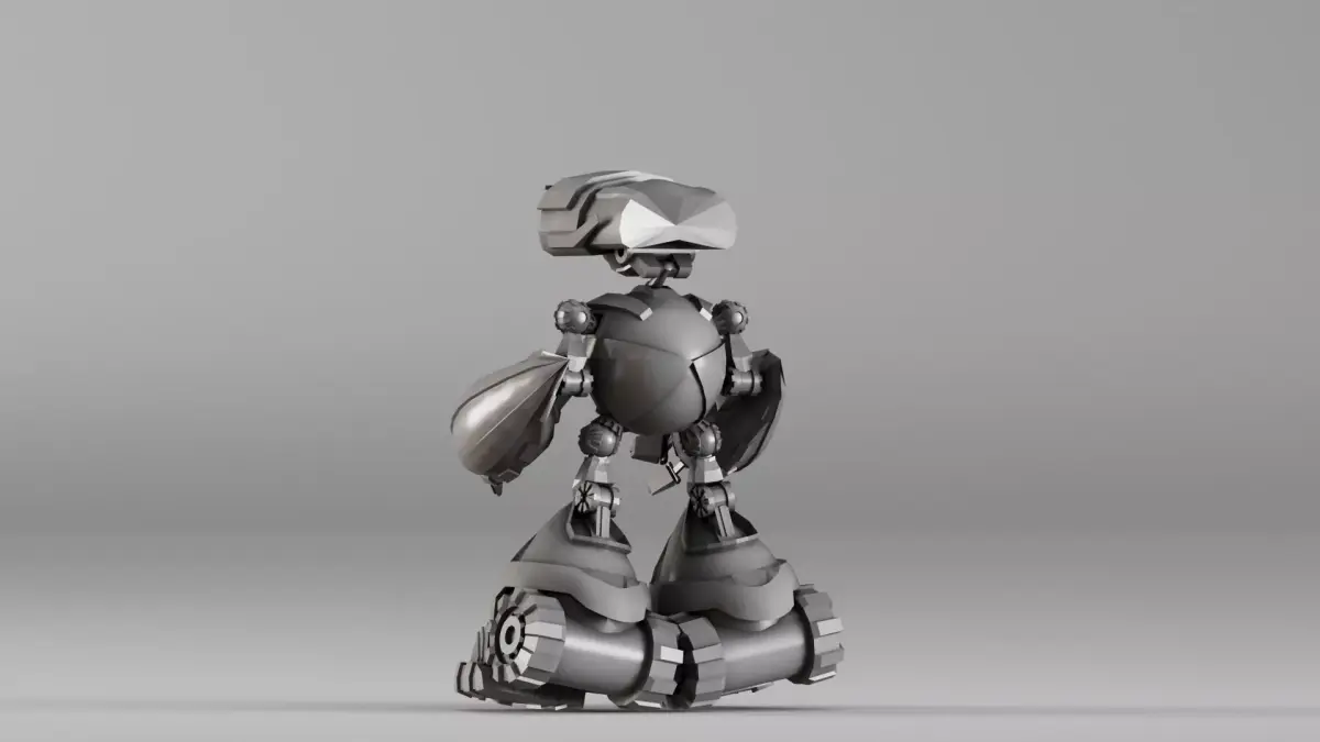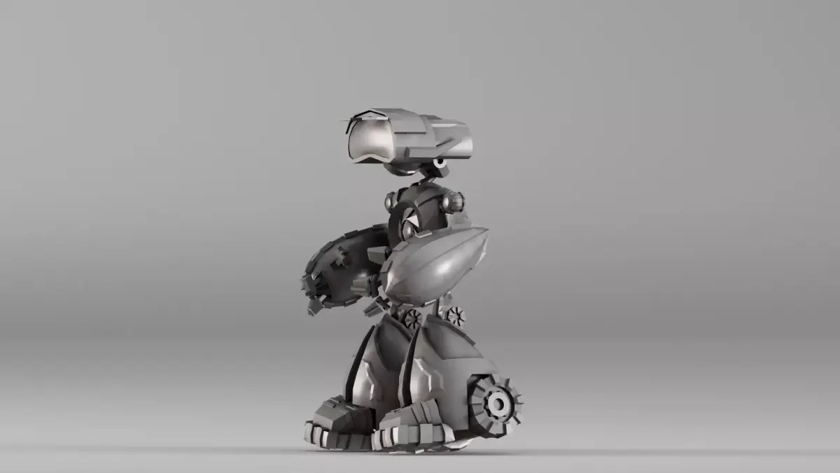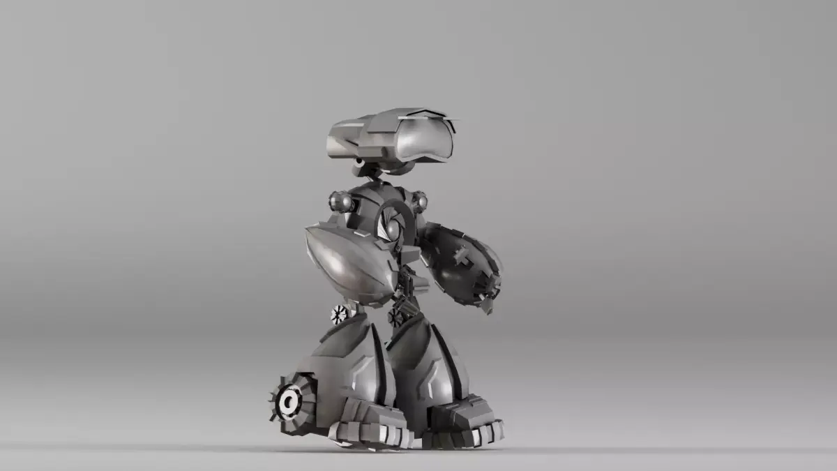 The design blends mechanical realism with stylized proportions, making it ideal for: