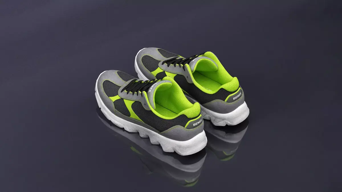 A high-quality 3D model of sport sneakers, captured and recreated using 3D scanning technology for realistic proportions, surface details, and accurate fabric structure. The model showcases a modern athletic design with mesh textures, dynamic paneling, and soft cushioning — ideal for product visualization, advertising, e-commerce mockups, and creative or professional projects requiring realistic human accessories.