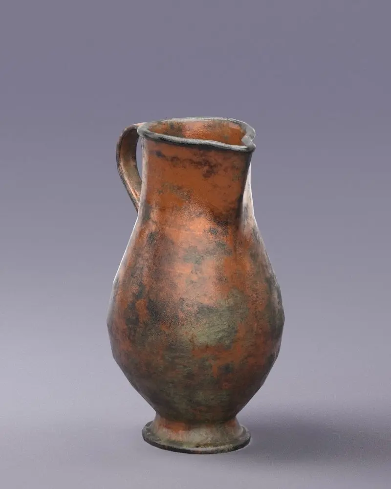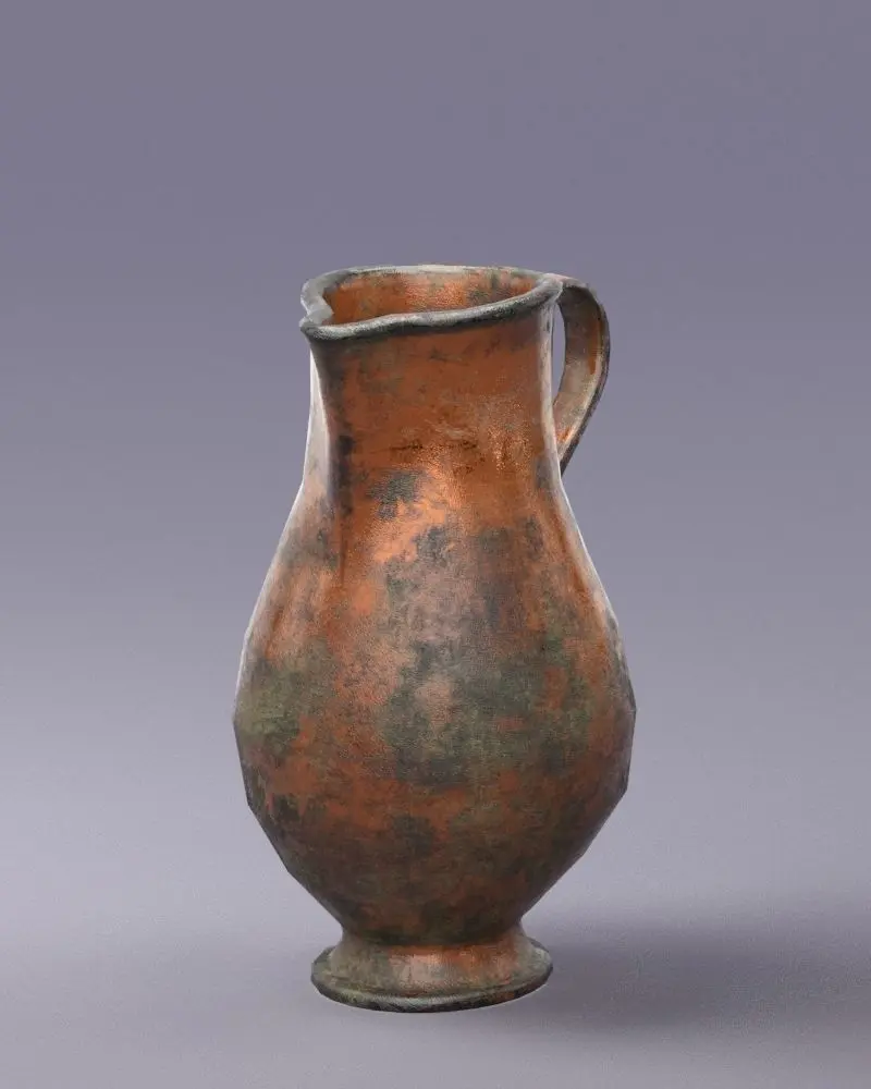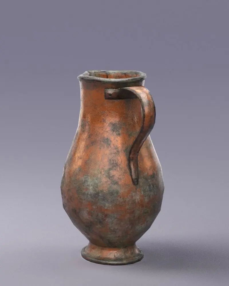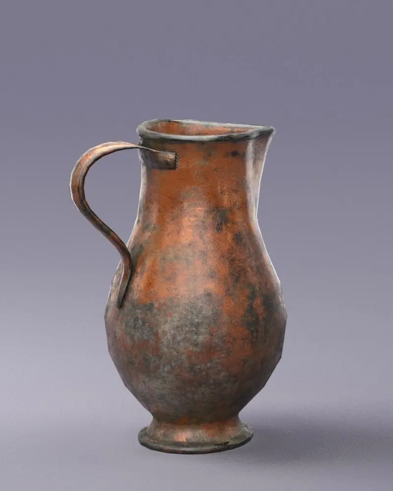 Introducing a captivating three-dimensional model of an antique copper pitcher. Crafted with meticulous attention to detail, this model exudes the charm of vintage craftsmanship. The weathered patina and intricate engravings evoke a sense of history and character, making it a standout piece in any collection or interior setting. Whether displayed as a standalone decorative accent or incorporated into a larger scene, this model adds a touch of rustic elegance and timeless appeal. Perfect for both visualizations and 3D printing projects, it's sure to elevate the authenticity and aesthetic of any virtual or physical environment.