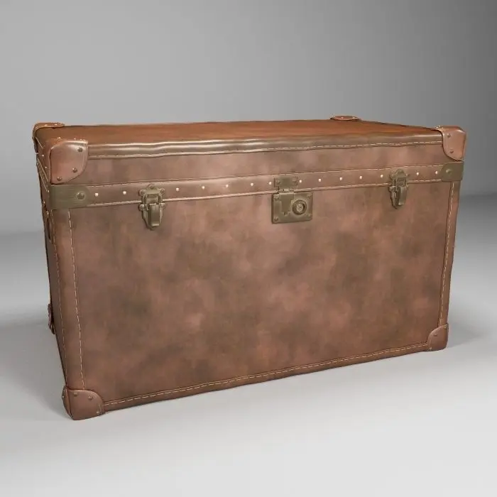 This 3D model presents a classic, low-polygon travel trunk, designed with an eye for both aesthetic appeal and optimization for game environments. The trunk sports a rich brown leather texture, with detailed stitching along the seams that suggest high-quality craftsmanship. Protective metal strips with a brushed brass finish wrap around the edges and corners, not only reinforcing the structure but also adding a vintage touch to the overall design. Sturdy leather handles and classic flip-lock latches ensure practicality in its virtual use. With its optimized polygon count, this trunk is perfectly suited for inclusion in various digital scenes, from historical settings to modern-day adventures, providing both functionality and visual interest without compromising on performance.
