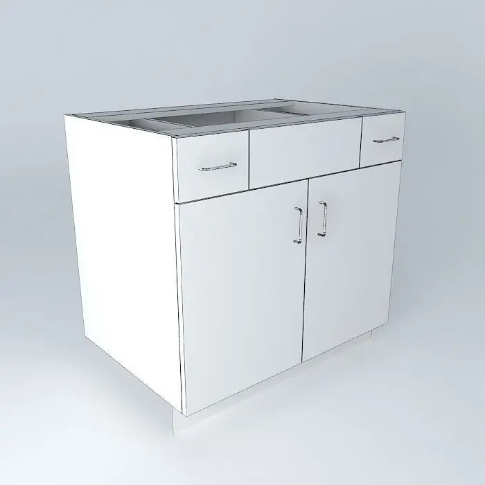 This 3D model was originally created with Sketchup 13 and then converted to all other 3D formats. Native format is .skp 3dsmax scene is 3ds Max 2016 version, rendered with Vray 3.00 Sink Base 2 Door 2 Drawer 1 False Drawer - Multiple Door Styles allow for use as Kitchen Cabinets, School Cabinets, Insitutional Cabinets