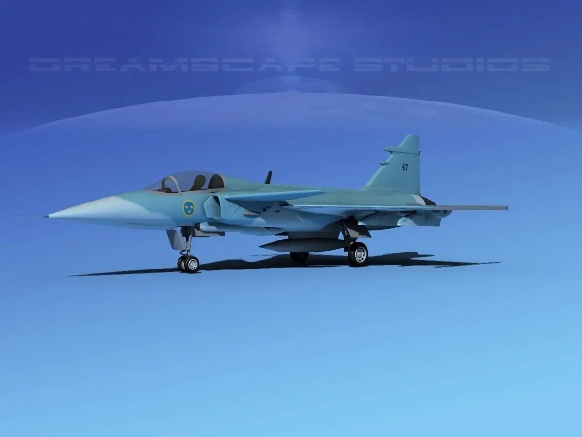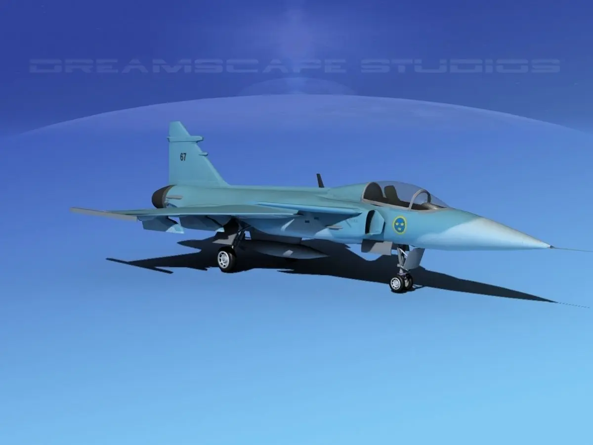 This model is built very near to scale of actual general dimensions. This model is fully textured and has many animateable features including stabilators, flaps, rudder, landing gear retraction and landing gear doors. The cockpit has some good detail. This model is available in a wide variety of formats. The Saab JAS 39 Gripen is a light single-engine multirole fighter aircraft manufactured by the Swedish aerospace company Saab. The Gripen has a delta wing and canard configuration with relaxed stability design and fly-by-wire flight controls. It is powered by the Turbine RM12. JAS 39A was initial version that entered service with the Swedish Air Force in 1996. A number have been upgraded to the C standard.