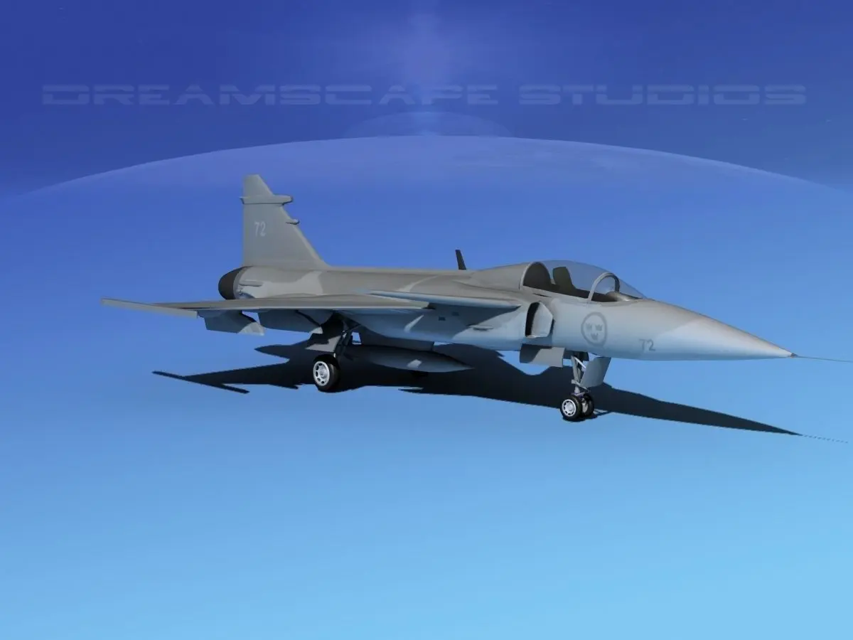 This model is built very near to scale of actual general dimensions. This model is fully textured and has many animateable features including stabilators, flaps, rudder, landing gear retraction and landing gear doors. The cockpit has some good detail. This model is available in a wide variety of formats. The Saab JAS 39 Gripen is a light single-engine multirole fighter aircraft manufactured by the Swedish aerospace company Saab. The Gripen has a delta wing and canard configuration with relaxed stability design and fly-by-wire flight controls. It is powered by the Turbine RM12. JAS 39A was initial version that entered service with the Swedish Air Force in 1996. A number have been upgraded to the C standard.