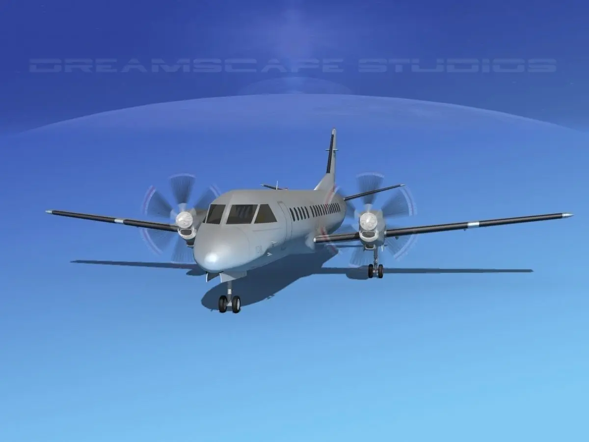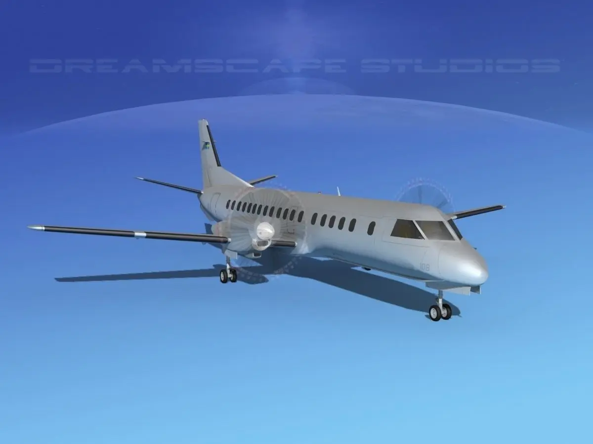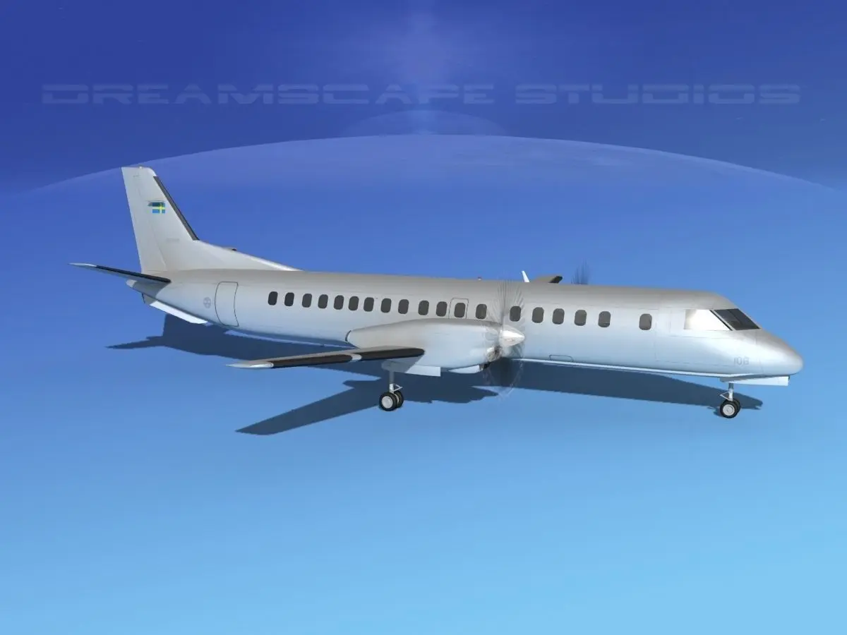 SAAB SF2000 Swedish Air Force This model was originally built in Max 13 near to scale, within 3% of general dimensions. It includes a lot of exterior detail and general cockpit modeling. The model is fully textured. This model also has animateable landing gear retraction, flaps, landing gear doors, ailerons, elevators and rudder. Propellers are animated. Tires and wheels are animateable also. It is available in several formats for a wide variety of end users. This model comes with many different airlines liveries. The model is built to be used in in-flight or airport ground animations and video or simulation. It can also be used to populate an airport scene.
