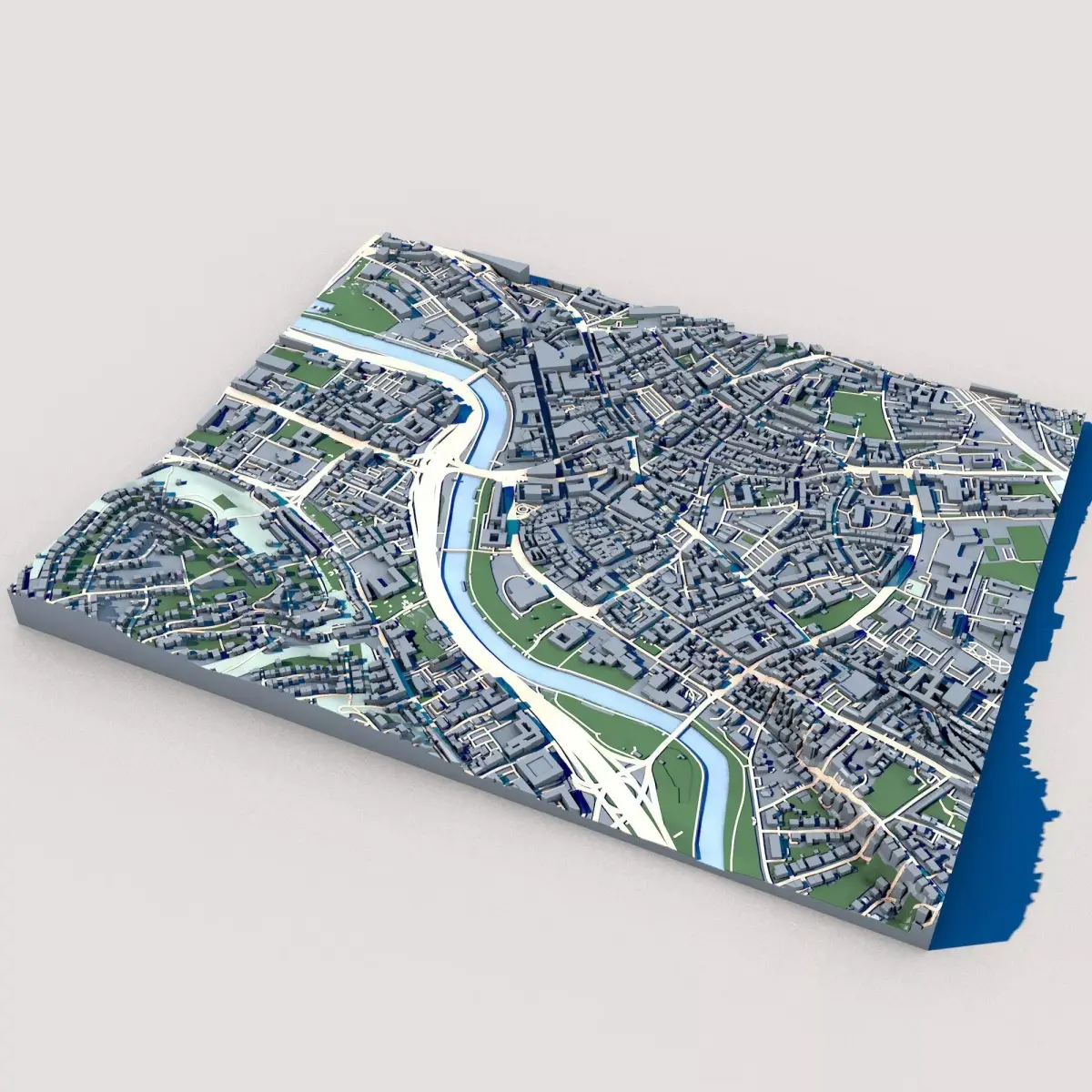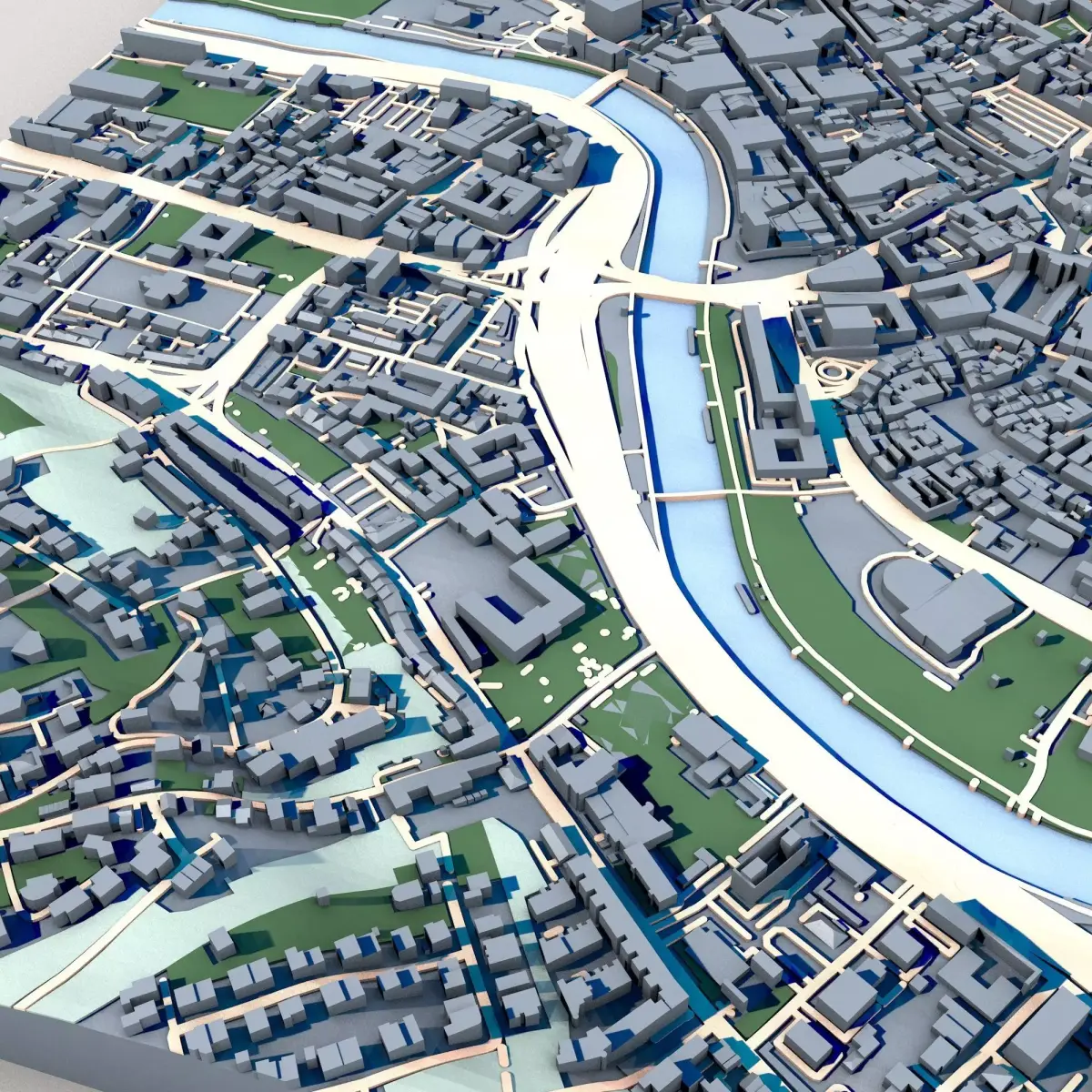 The .ZIP folder contains separate .STL files – buildings, water, vegetation, base etc.