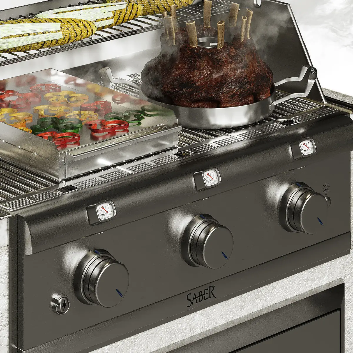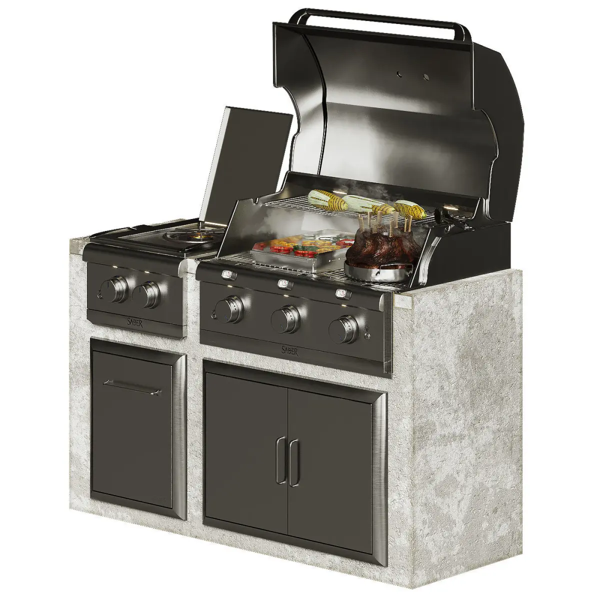 Best american grill for you exteriors! This model combines a lot of Saber Grills modules and kitchen ware.