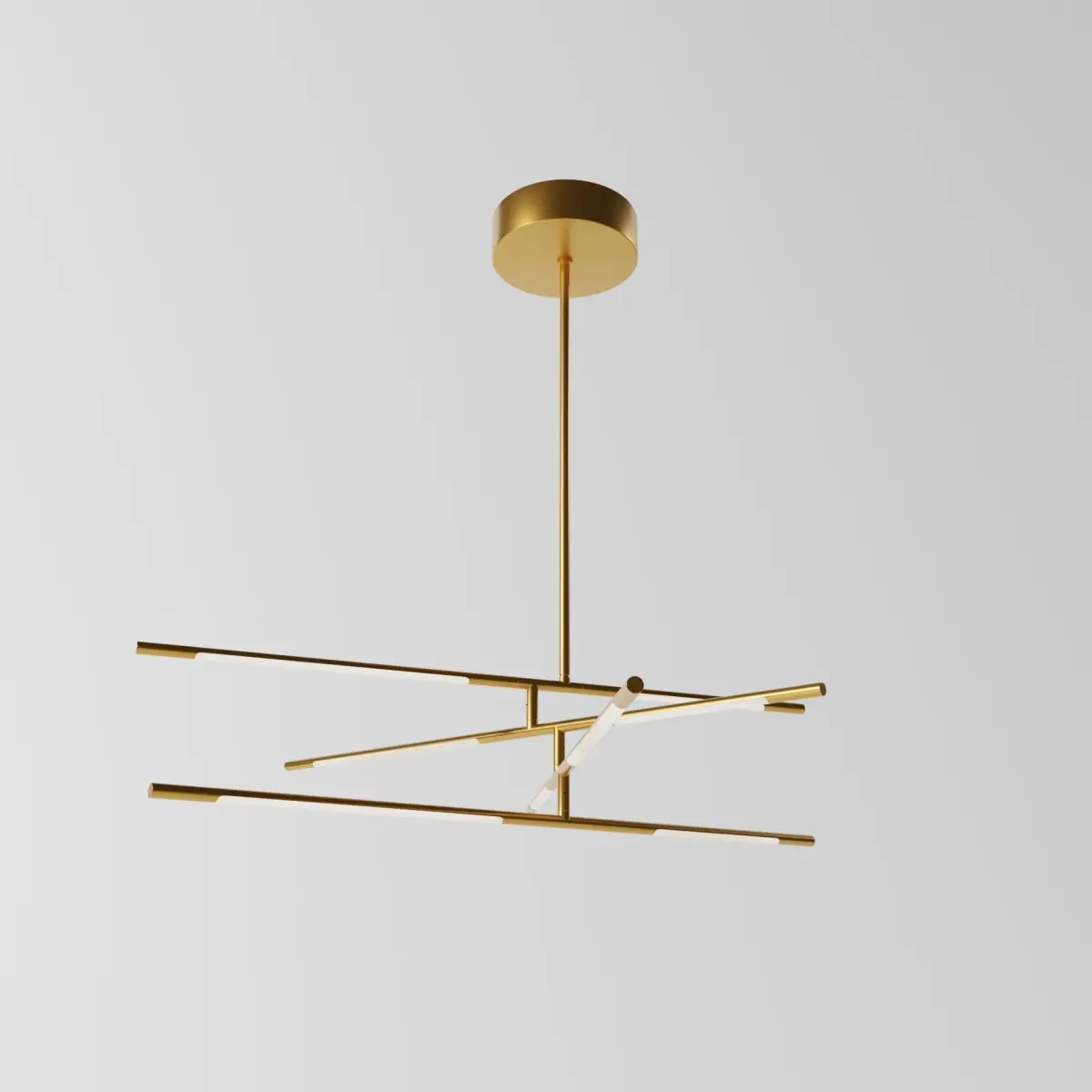 Model in BlenderSimple Principled BRDF materialThis modern interpretation of a chandelier boasts an on-trend gold finish ' perfect for contemporary homes.Height 80cmDepth 95cmWidth 95cm