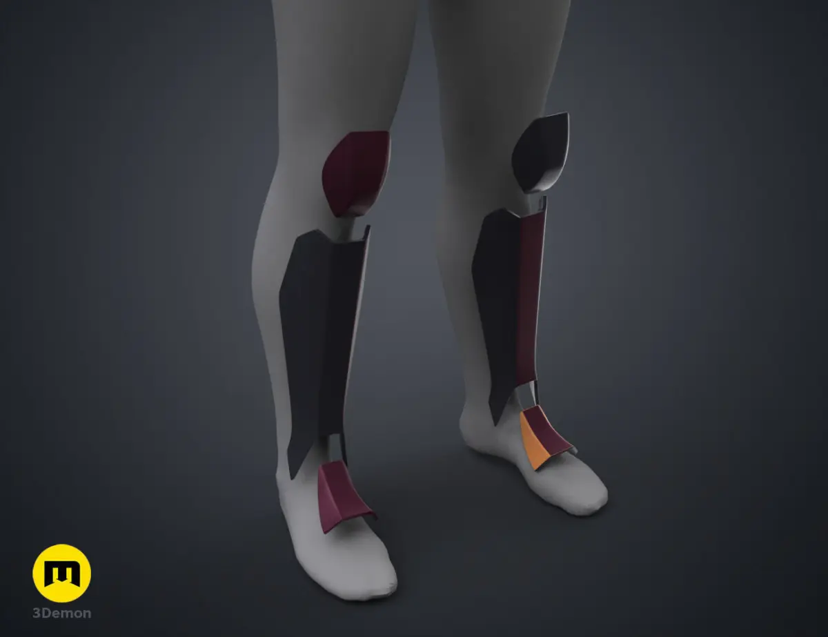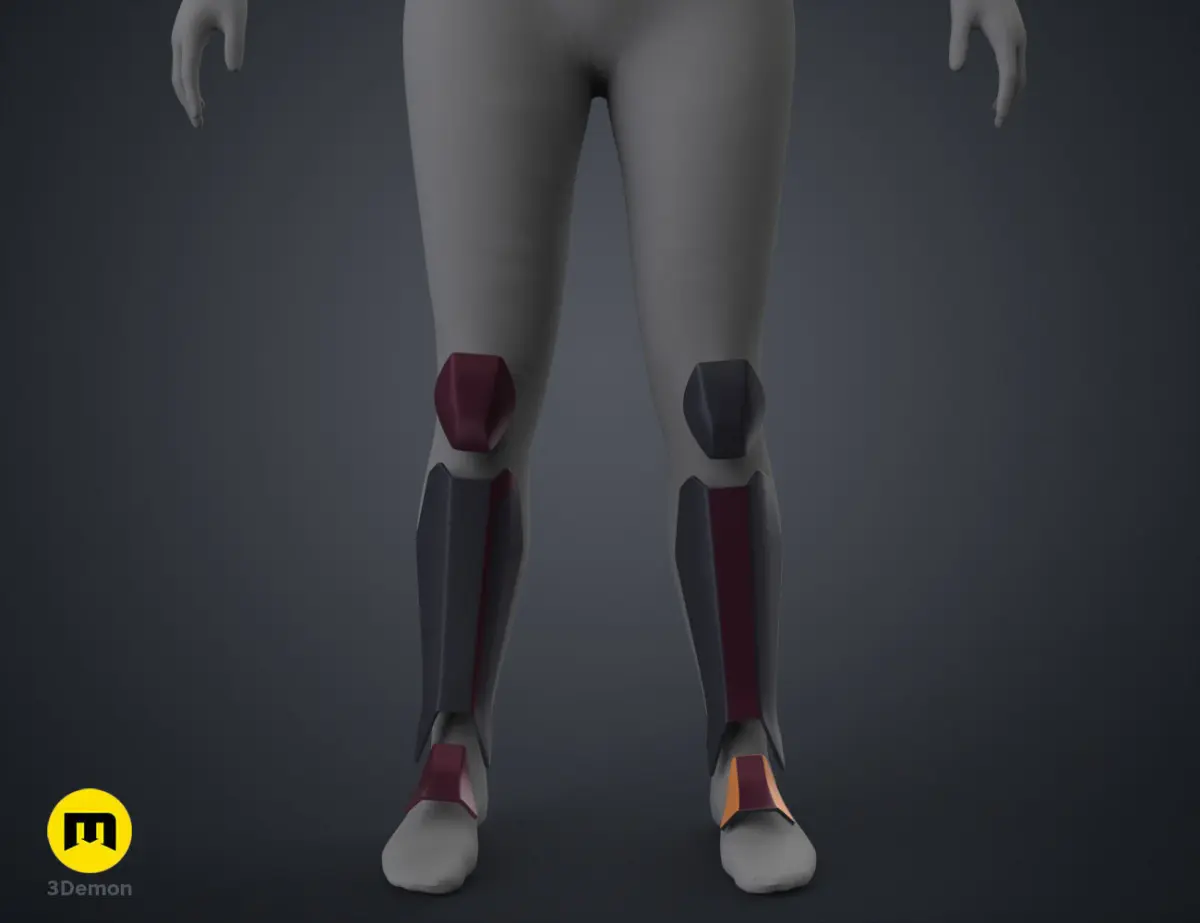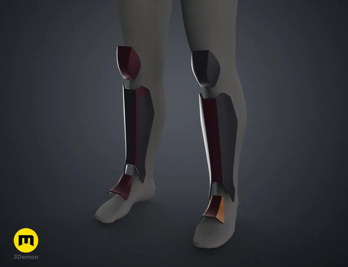 This is a digital 3D printable model of Sabine Wren’s Shin Armor from the Disney series Ahsoka.