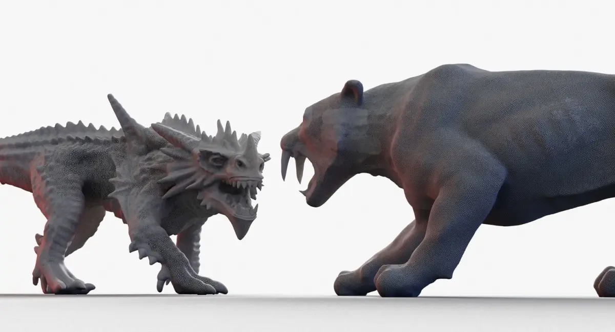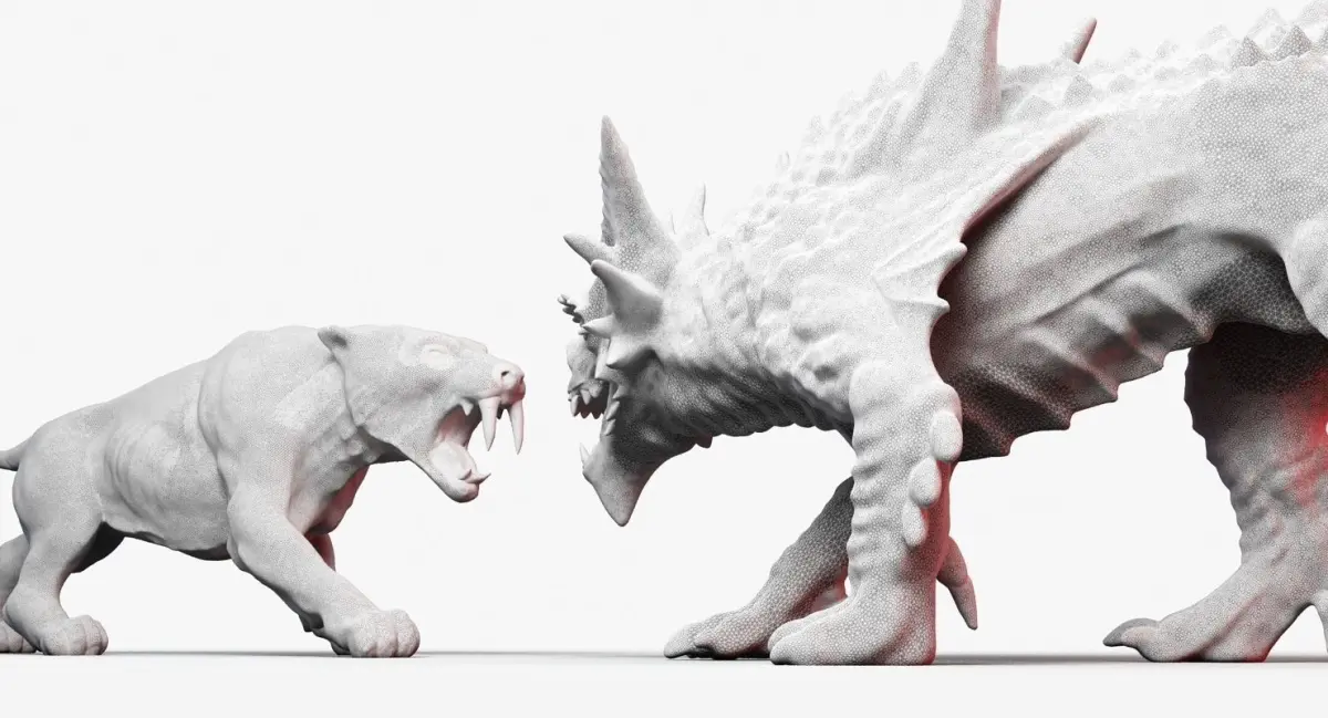 Detailed HD 3D scan of a Sabre Tooth Tiger and Dragon hunterScan was detailed in Sculptris