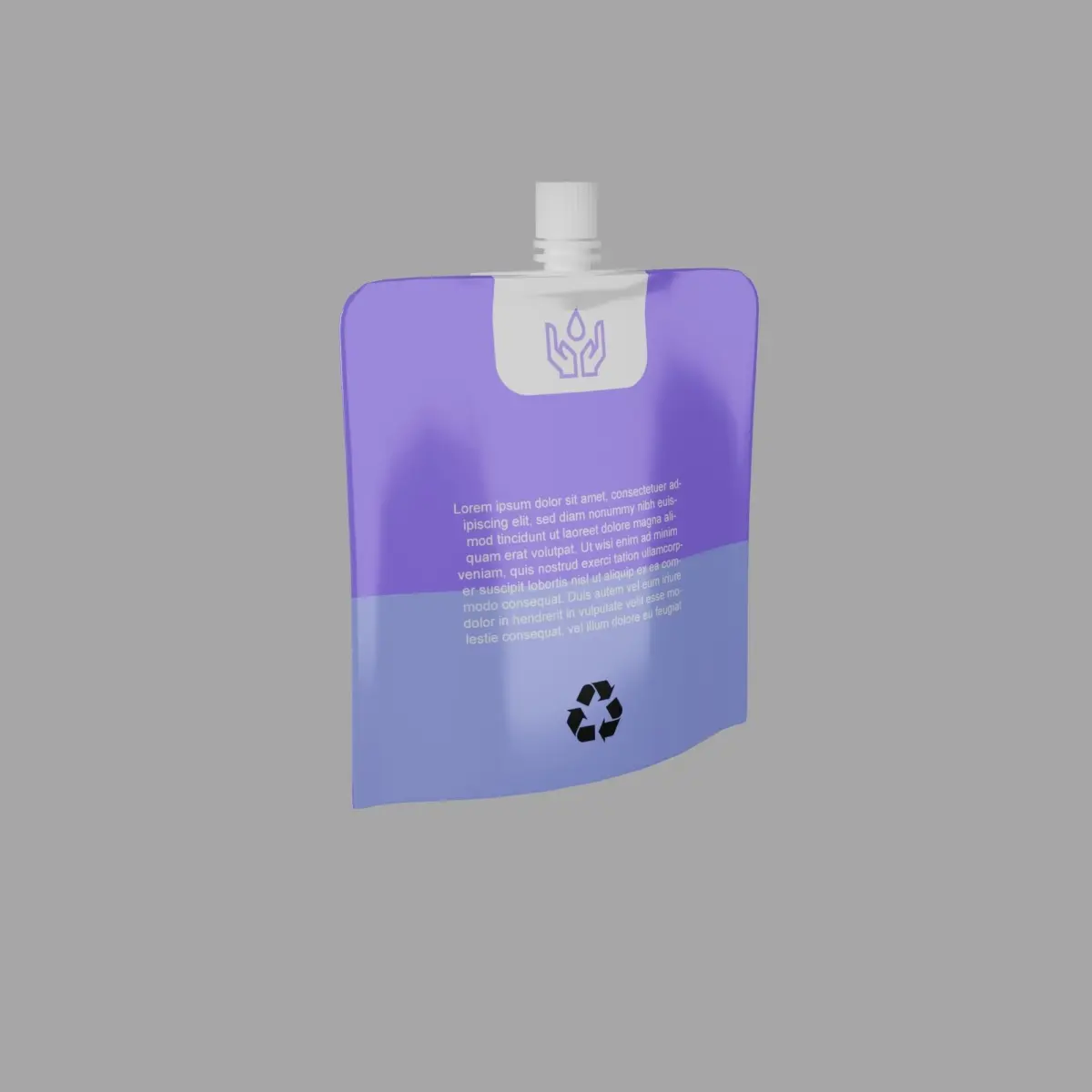 3D model of a plastic spout pouch Mini version.The 3D model of a spout pouch is a digital three-dimensional representation of a container used for liquid or semi-liquid products such as cosmetics, food, beverages or pharmaceuticals. The 3D model design captures all the details of the pouch, including its shape, size, textures and colors.