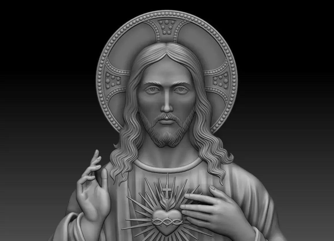 Sacred Heart of Jesus 3d model. 3d relief for cnc-sistems and 3d printing. You can scale the model to any size you need. For milling on CNC machines or 3d printing. Can be used in the production of souvenirs, furniture, jewelry. Files in stl format, for import to artcam, rhinoceros, 3ds max, etc. You can scale the model to any size you need.Sacred Heart of Jesus in high-detail 3D relief Suitable for CNC milling and 3D printing STL format, scalable to any size Compatible with ArtCAM, Rhinoceros, 3ds Max Ideal for religious souvenirs, furniture, jewelry, and interior décor This versatile model is a valuable tool for anyone looking to create beautiful, precise religious designs across a wide range of applications.This model is perfect for artisans and manufacturers creating religious-themed items such as iconography, church décor, or custom gifts. Its high level of detail ensures precise output when milled or 3D printed, maintaining a professional finish. It’s also ideal for woodworking, metal engraving, or resin casting.Ideal for CNC carving, 3D printing, and laser engraving. This model is perfect for creating religious wall plaques, personal devotional items, church décor, and spiritual gifts.