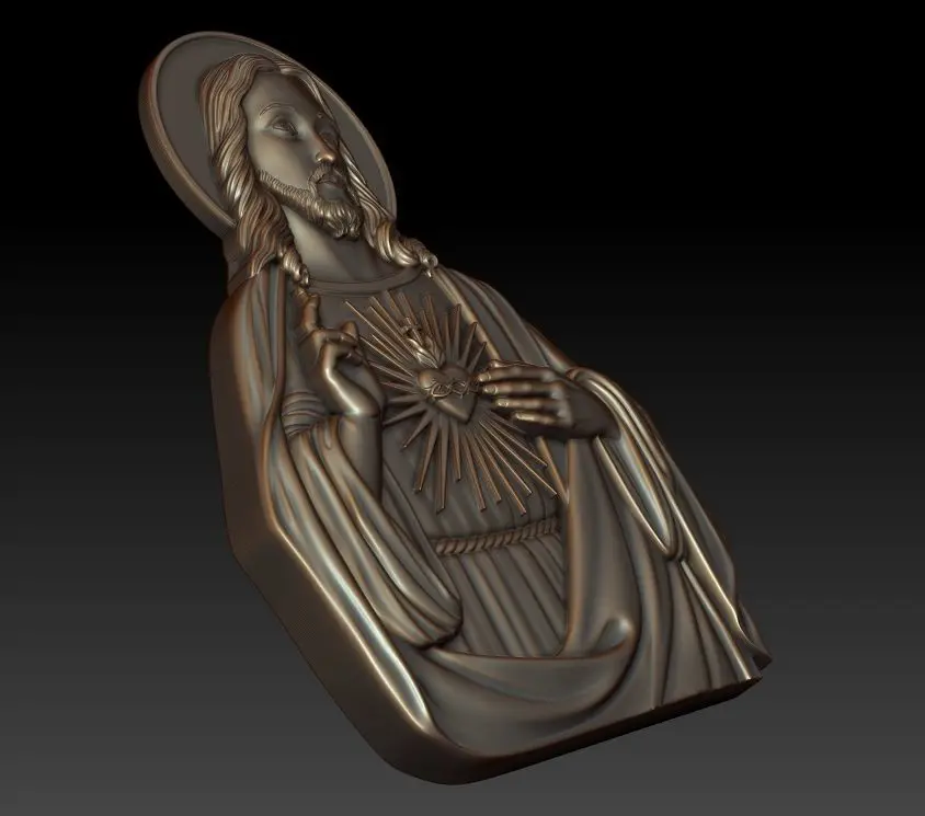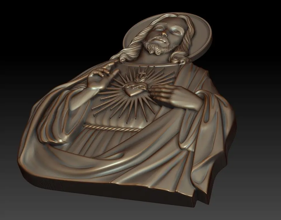 Sacred Heart of Jesus 3d model. 3d relief for cnc-sistems and 3d printing. Can be used in the production of souvenirs, furniture, jewelry. Files in stl format, for import to artcam, rhinoceros, 3ds max, etc. You can scale the model to any size you need.