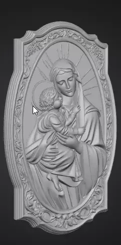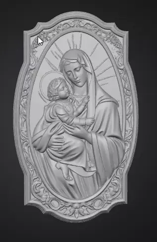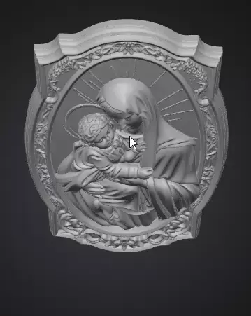 Sacred mother and child scene sculpted in high reliefEmphasis on emotional bond care and protectionStylized symbolic human figures suitable for commercial useDeep layered relief for strong light and shadow contrastOrnamental frame enhancing balance and durabilityIntegrated loop for chain or cord attachment