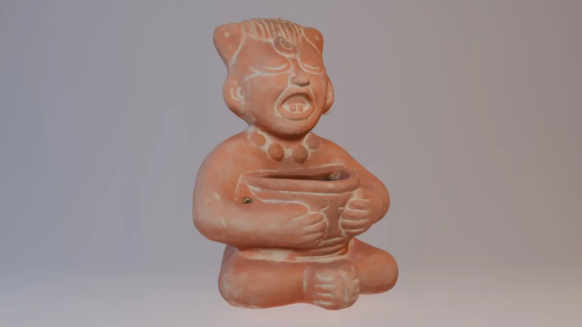 3D model of a small ceremonial figure representing a sacrifice ritual, rooted in ancient traditions. This handcrafted piece offers a glimpse into the symbolic practices of past civilizations. Scanned using Reality Capture technology, the model preserves the fine details and cultural significance of the original artwork. Ideal for those interested in cultural heritage, ancient rituals, or as a unique decorative element