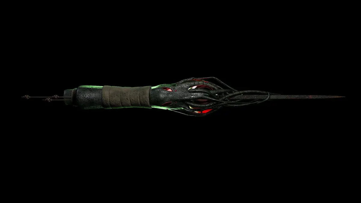 An old and decrepit dagger with a rusted, dull blade, with what appears to be a Cephalopod inspired handle; you cant quite explain it but it gives off a familiar, yet dangerous aura.