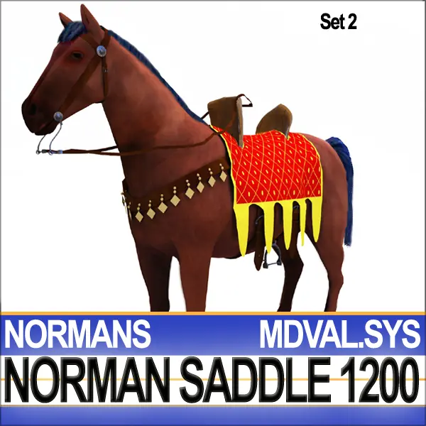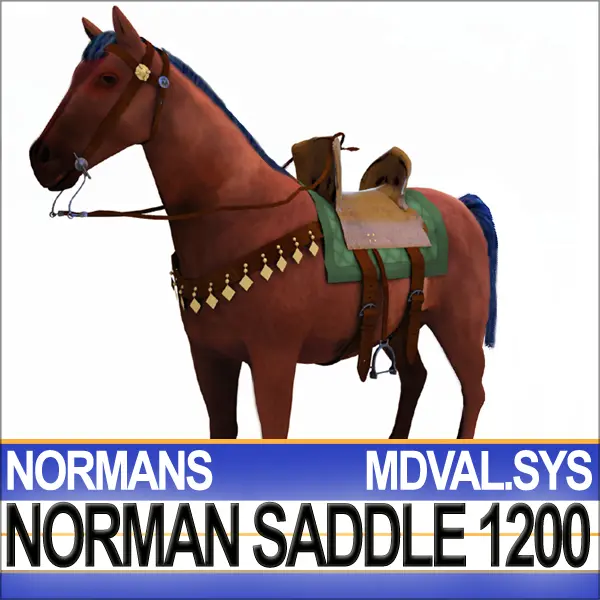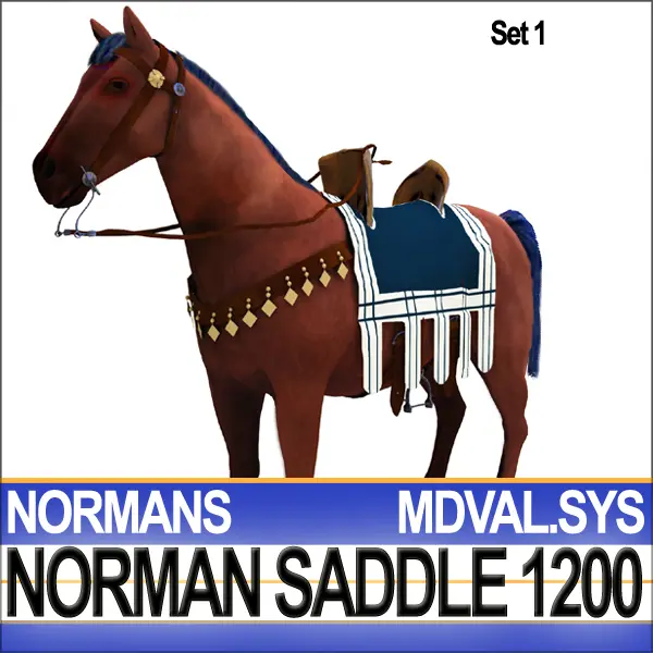 Medieval cavalry Norman Saddle, Bridle, Harness Set for Horse 1200. Faithful, accurate Reconstruction. C4D, 3DS, OBJ, POSER, DAZ, from VUE6 to VUE10.
