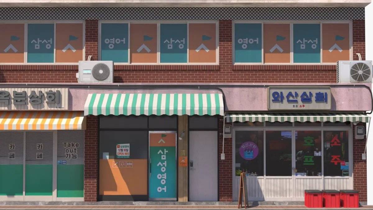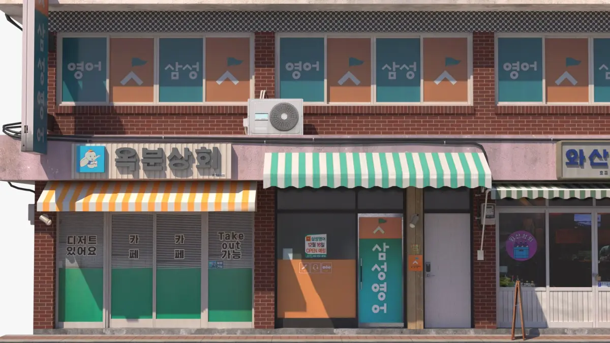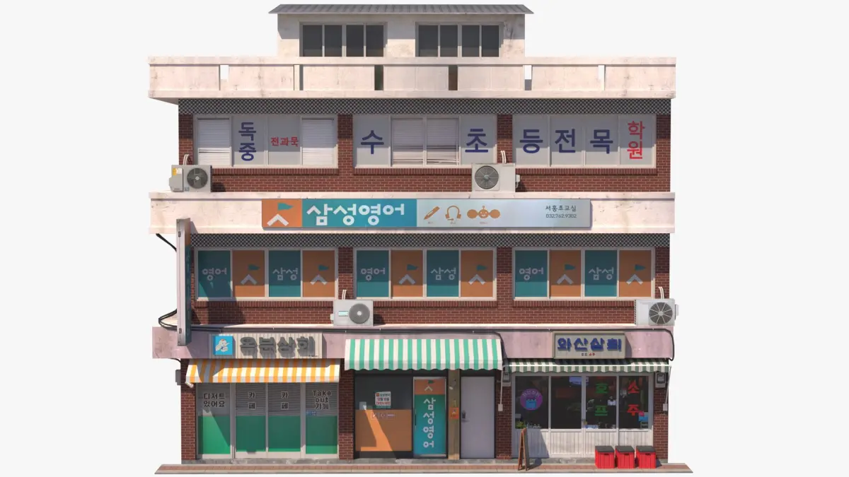 Typical South Korean commercial building whith stores and offices.