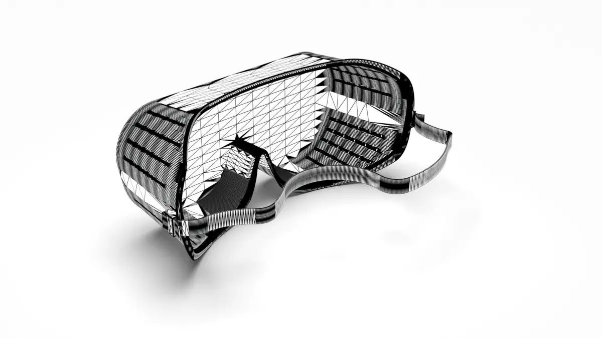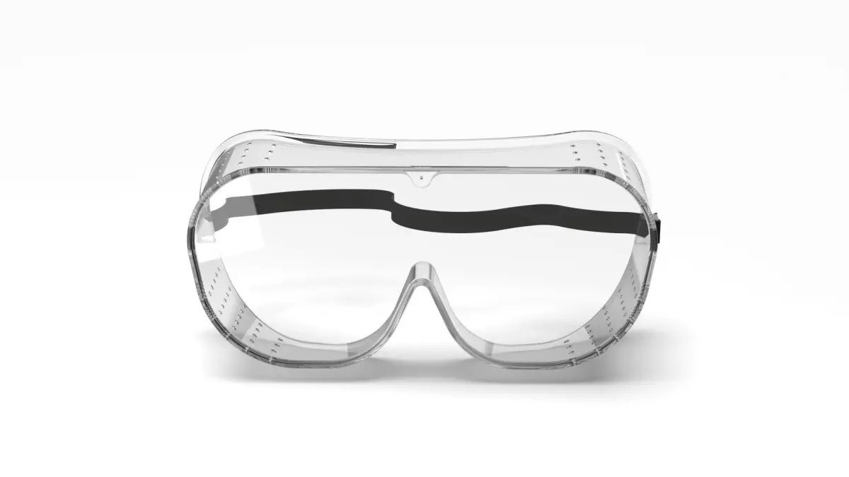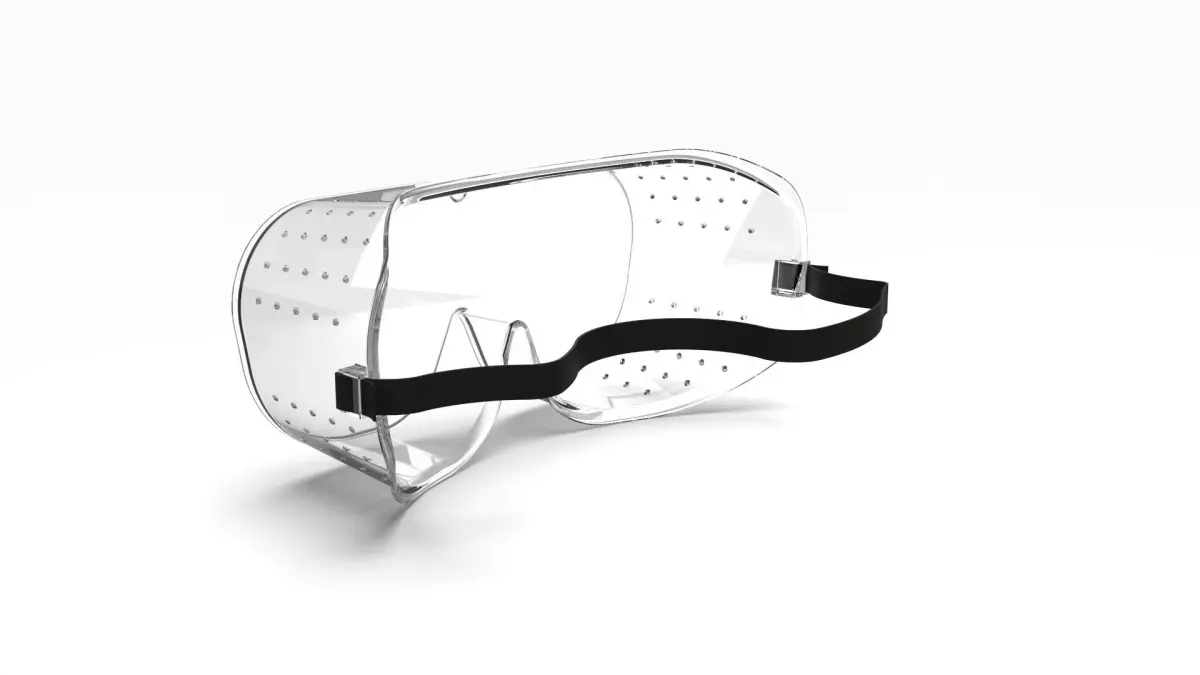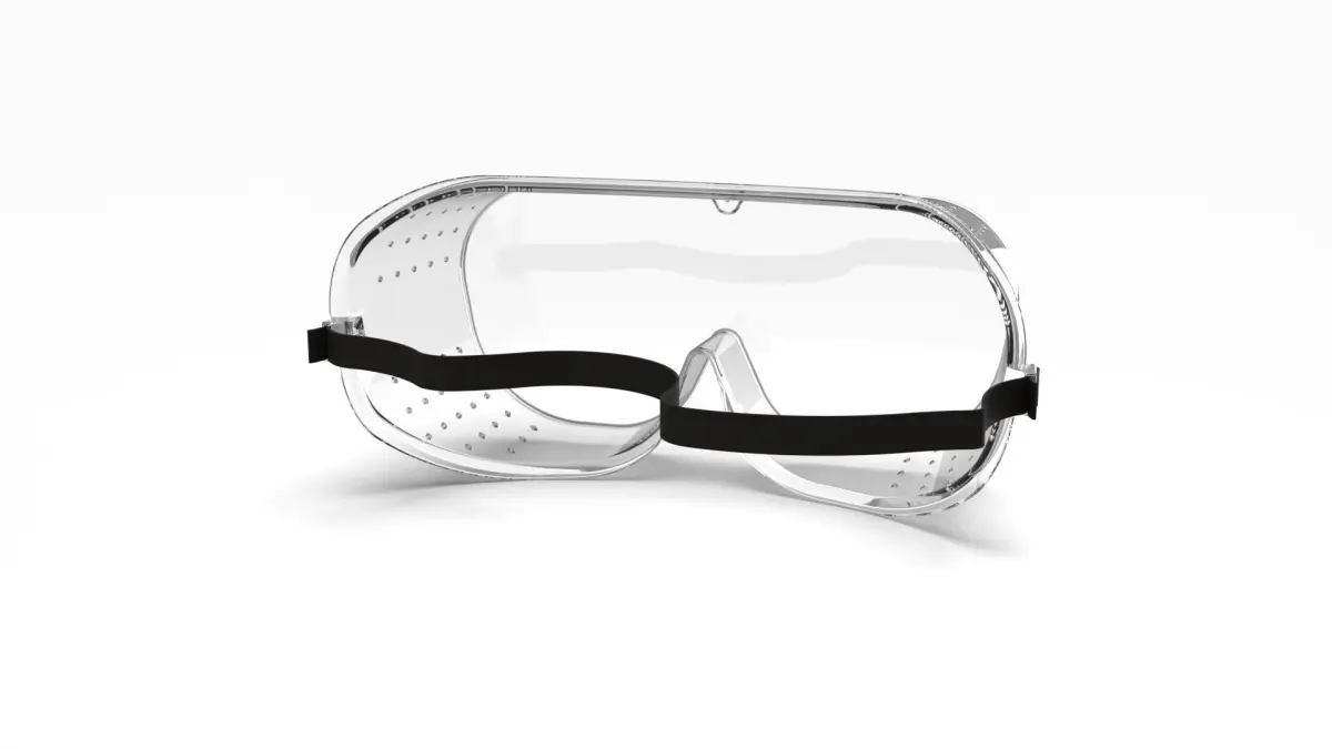 Safety Glasses with elastic belt. Has NURBS data. 3D model of safety goggles. Solid geometry model. Can be used as an industrial safety equipment. Also can be used as a game asset or for product showcase or accessory.