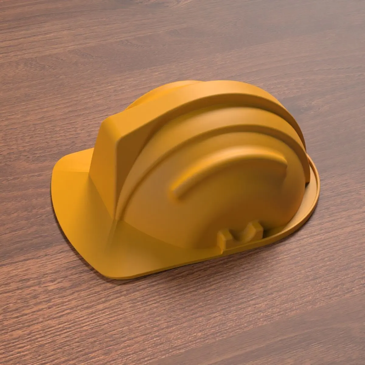 This 3D model is designed to mimic the aesthetics of a safety helmet with smooth, curved surfaces and prominent outlines to emphasize sturdiness and protection.