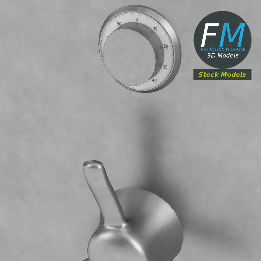 Safety vault 3D Model. 4 individual objects (frame, door, handle, dial; so, you can easily rotate or even animate them) sharing the same non overlapping UV Layout map, Material and PBR Textures set. Production-ready 3D Model, with PBR materials, textures, non overlapping UV Layout map provided in the package.