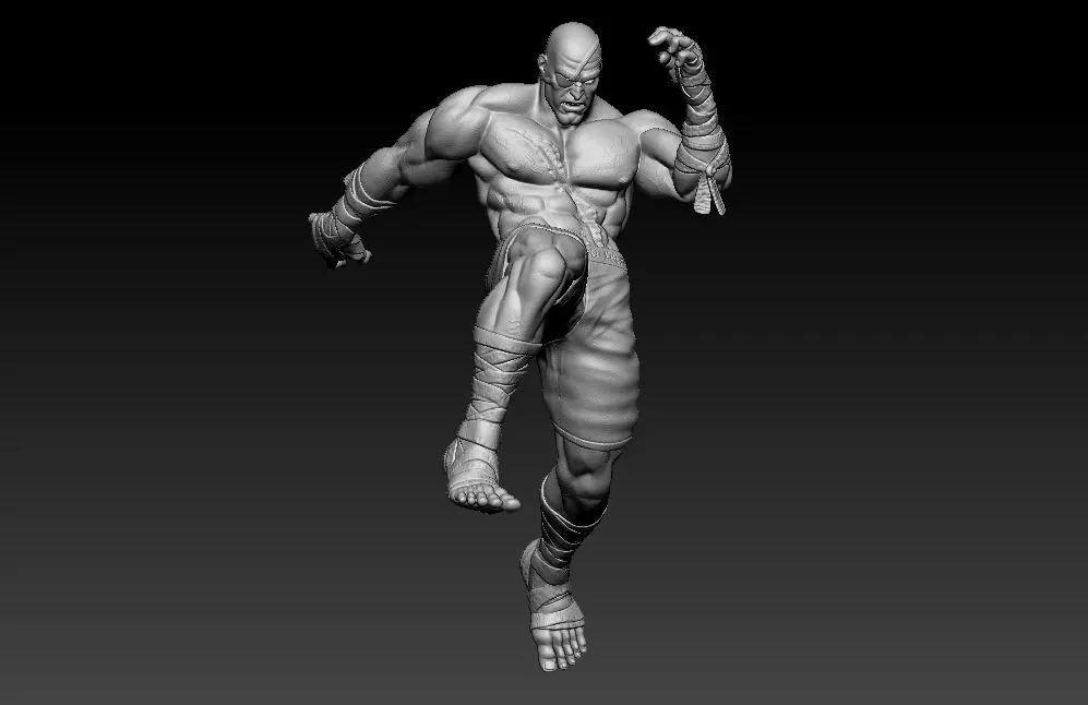 Sagat from Street Fighter Game, Tiger Assault. Full Piece and into parts for easy print. 30cm tall.