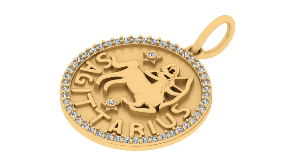 Celebrate the fearless and free-spirited essence of the Sagittarius zodiac sign with this beautifully crafted Sagittarius Zodiac Medallion Pendant, designed in precise 3D CAD for perfect gold casting and stone setting.