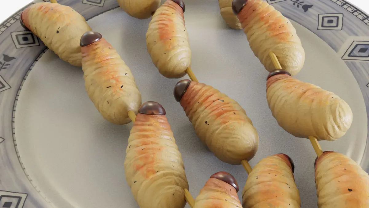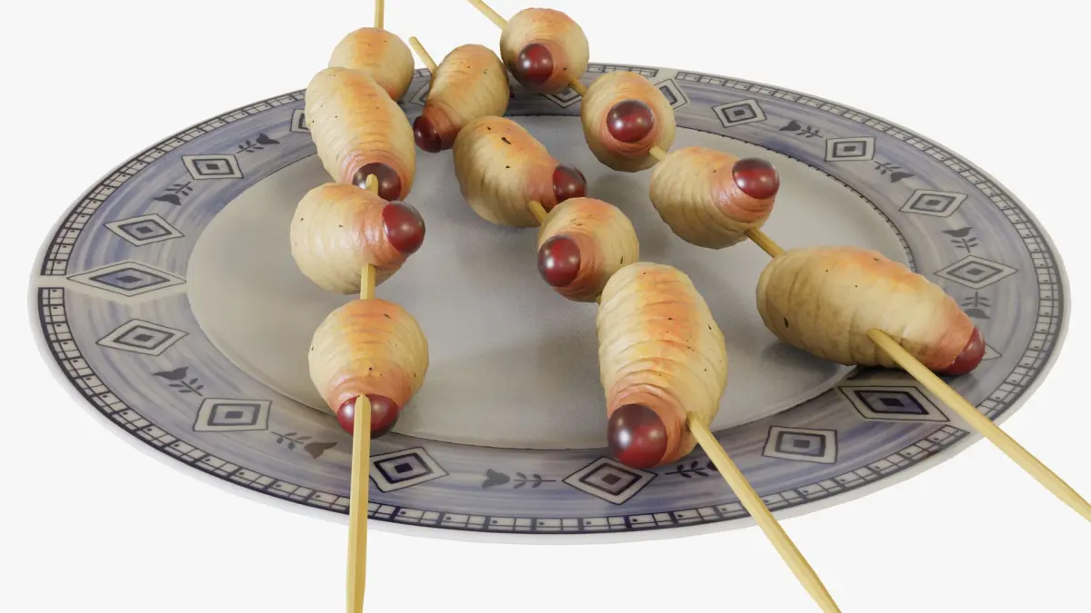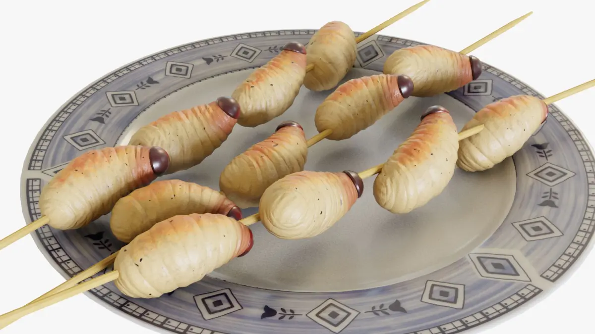 3D model of sago grubs skewers