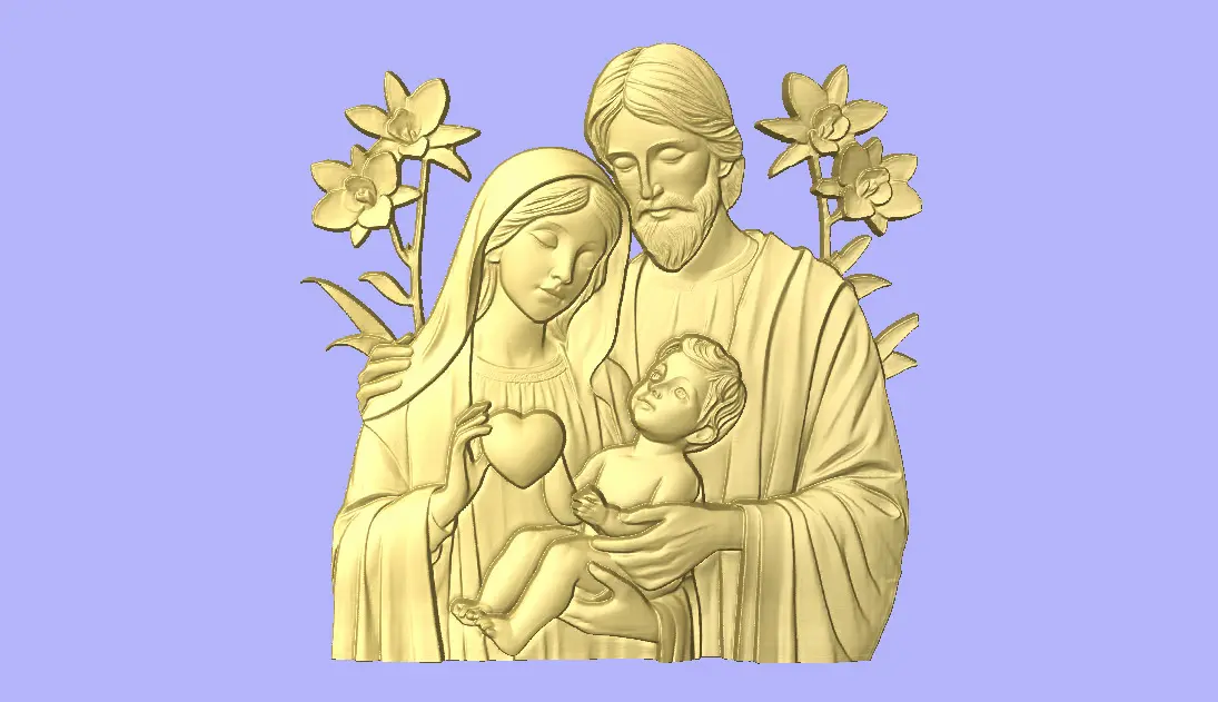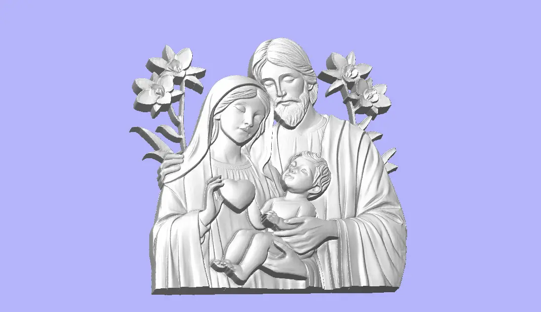 ARQUIVO EXCLUSIVO, SAGRADA FAMILIA DE NAZARE, COM JOSE, MARIA E JESUS CRISTO AINDA BEBÊ PARA DEIXAR SEU AMBIENTE MAIS ELEGANTE E ACONCHEGANTE.FORMATO DO ARQUIVO: STLARQUIVO DIMENSIOAVEL arquivo stl, sagrada família de nazaré